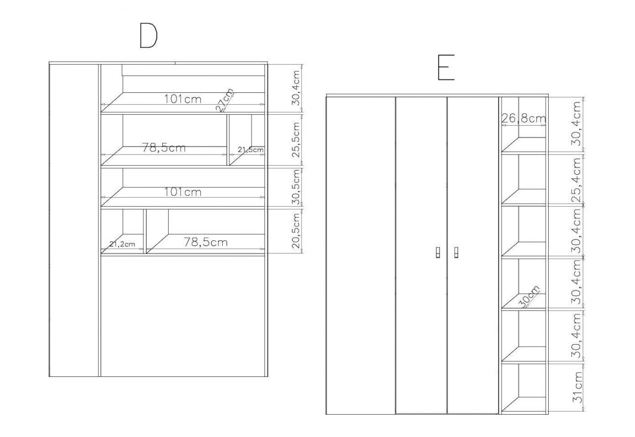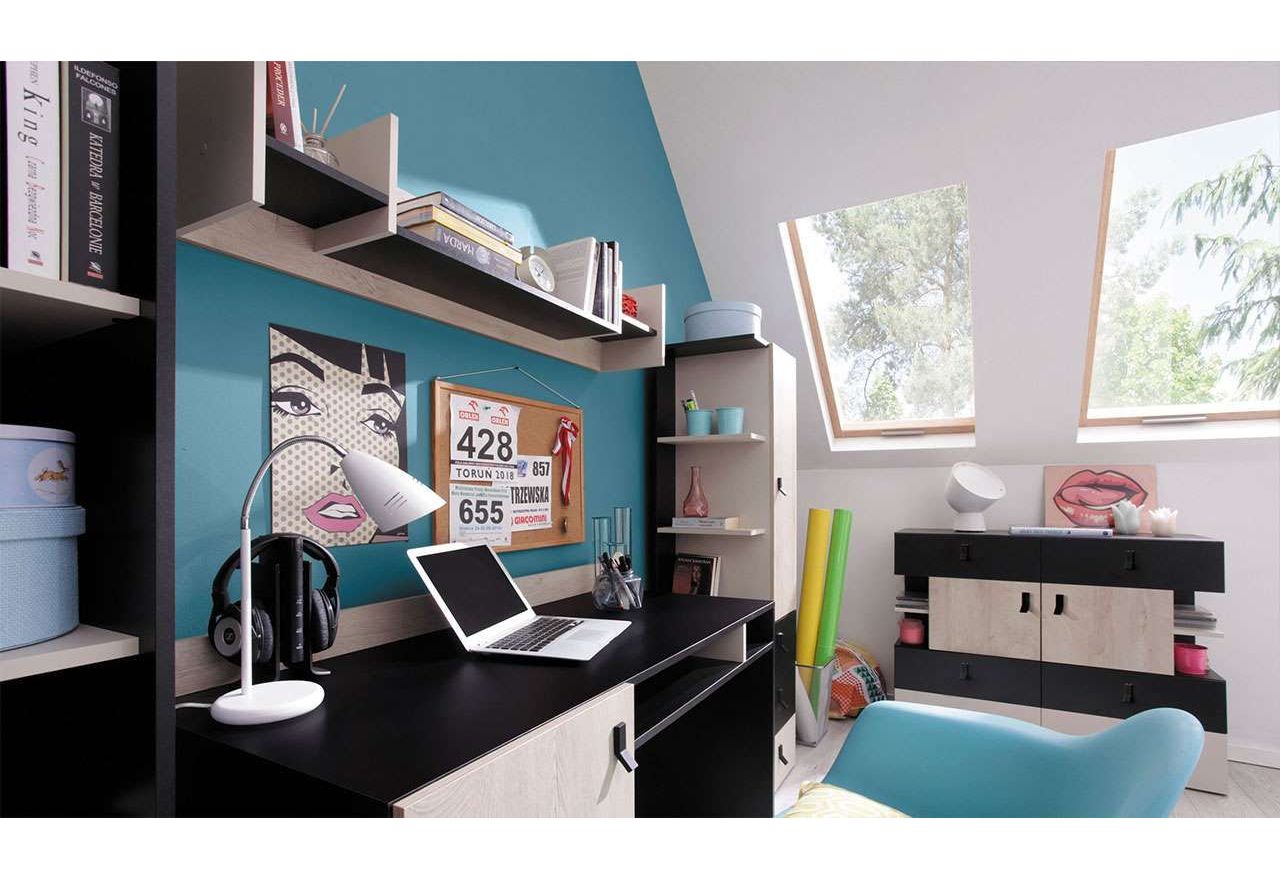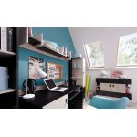 Meble systemowe z kolekcji NALET – dedykowane są do pokoju młodzieżowego. Bryły wyróżniają się wysoką jakością wykonania oraz atrakcyjnym wyglądem. Swoim wyglądem przyciągają spojrzenia, przez co nie przejdziesz obok nich obojętnie. Zestaw składa się z szaf, regałów, biurka, łóżka 90x200 cm, komody, szafki RTV oraz półek, które można dowolnie ze sobą łączyć według uznania. W szafie narożnej dostępne jest oświetlenie jednopunktowe z czujnikiem ruchu w opcji. Łóżko można wyposażyć w materac. Płyta meblowa użyta podczas produkcji jest bardzo wysokiej jakości, a obrzeża zostały dodatkowo wykończone okleiną ABS. Szuflady posiadają prowadnice rolkowe. Uchwyty wykonane zostały z tworzywa sztucznego. Materiały jak i solidne wykonanie dają gwarancję na użytkowanie przez długie lata. Stwórz wymarzony pokój nastolatka z kolekcją mebli NALET!