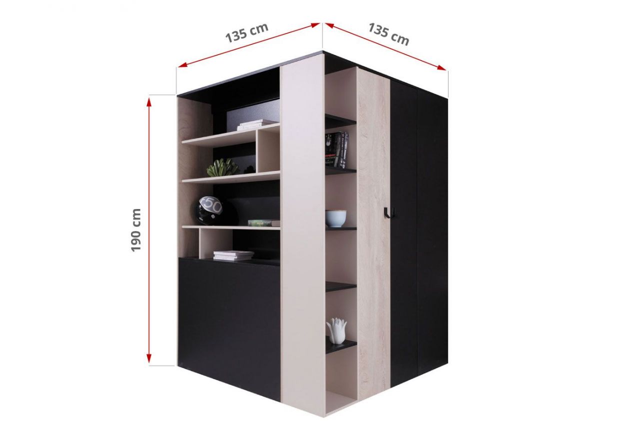 Poprzedni arrow_back_ios_newNastępny arrow_forward_iosPojemna szafa narożna z opcją oświetlenia do pokoju młodzieżowego - NALET Czarny / Dąb / Beż