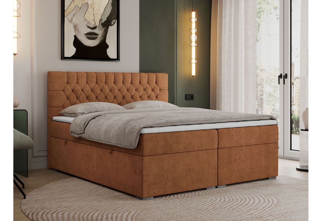 Główny materac kieszeniowy Multipocket dostarcza doskonałego wsparcia dla ciała, dzięki wysokoelastycznej piance T-30 co jest kluczowe dla zdrowego snu. Jego konstrukcja z niezależnymi kieszeniami minimalizuje przenoszenie ruchu. Dodatkowo, materac nawierzchniowy wykończony pianką T-25 zapewnia uczucie miękkości i komfortu, dostosowując się do kształtu ciała. Dwa pojemniki na pościel to praktyczne rozwiązanie, które pozwoli na łatwe przechowywanie pościeli i utrzymanie porządku. Automat na sprężynach sprawia, że otwieranie pojemników jest wygodne i szybkie. Tapicerowany zagłówek to prawdziwa ozdoba, która dodaje wnętrzu klasy i staje się centralnym punktem każdej sypialni.