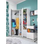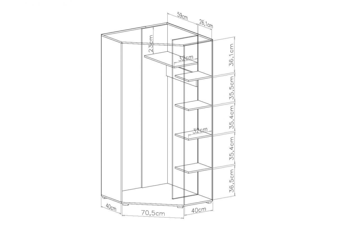Spraw radość swojemu dziecku dzięki kolekcji SILVA! Pojemna i praktyczna narożna szafa to klucz do sukcesu porządku i zorganizowania ubrań. To mebel obowiązkowy w pokoju dorastającego młodego człowieka. Praktyczna garderoba o geometrycznym kształcie – wszystkie Twoje rzeczy będą w jednym miejscu bez konieczności chowania ich po kątach. Szafa o dwóch frontach nada efektownego wyglądu sypialni. Twoje dziecko zyska swoją osobistą garderobę! Wewnątrz znajdują się dwa szerokie drążki ubraniowe oraz liczne półki. System SILVA to hit dla młodego człowieka z racji swojej nowoczesności i świetnej konstrukcji brył. Kolekcja ta to świetna propozycja dla osób, które cenią sobie wysokiej jakości designerskie meble. Krawędzie mebli dodatkowo zostały zabezpieczone obrzeżem ABS, co wpływa na jeszcze większą żywotność. Wysokiej jakości płyta laminowana gwarantuje odporność na zarysowania, działanie promieni słonecznych oraz wilgoć. Precyzyjne wykonanie, oryginalna i solidna konstrukcja sprawia, że użytkowanie mebli jest wieloletnie. Przepiękna kolekcja SILVA to wiele brył, dzięki czemu istnieje możliwość stworzenia i dobrania mebli według Twojego upodobania! Stwórz świetną kompozycję z poszczególnych elementów i ciesz się użytkowaniem!