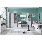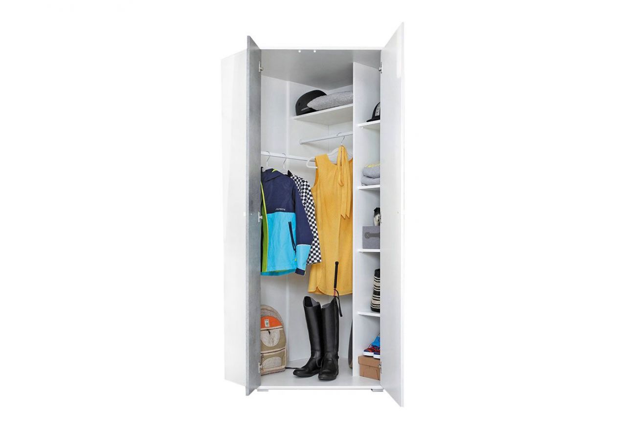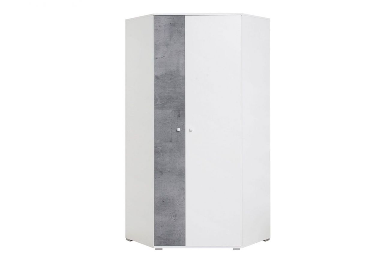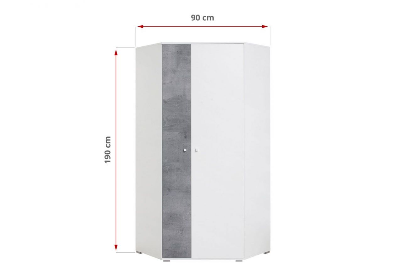 Pojemna i praktyczna szafa narożna do sypialni nastolatka - SILVA - Biały Lux / Beton