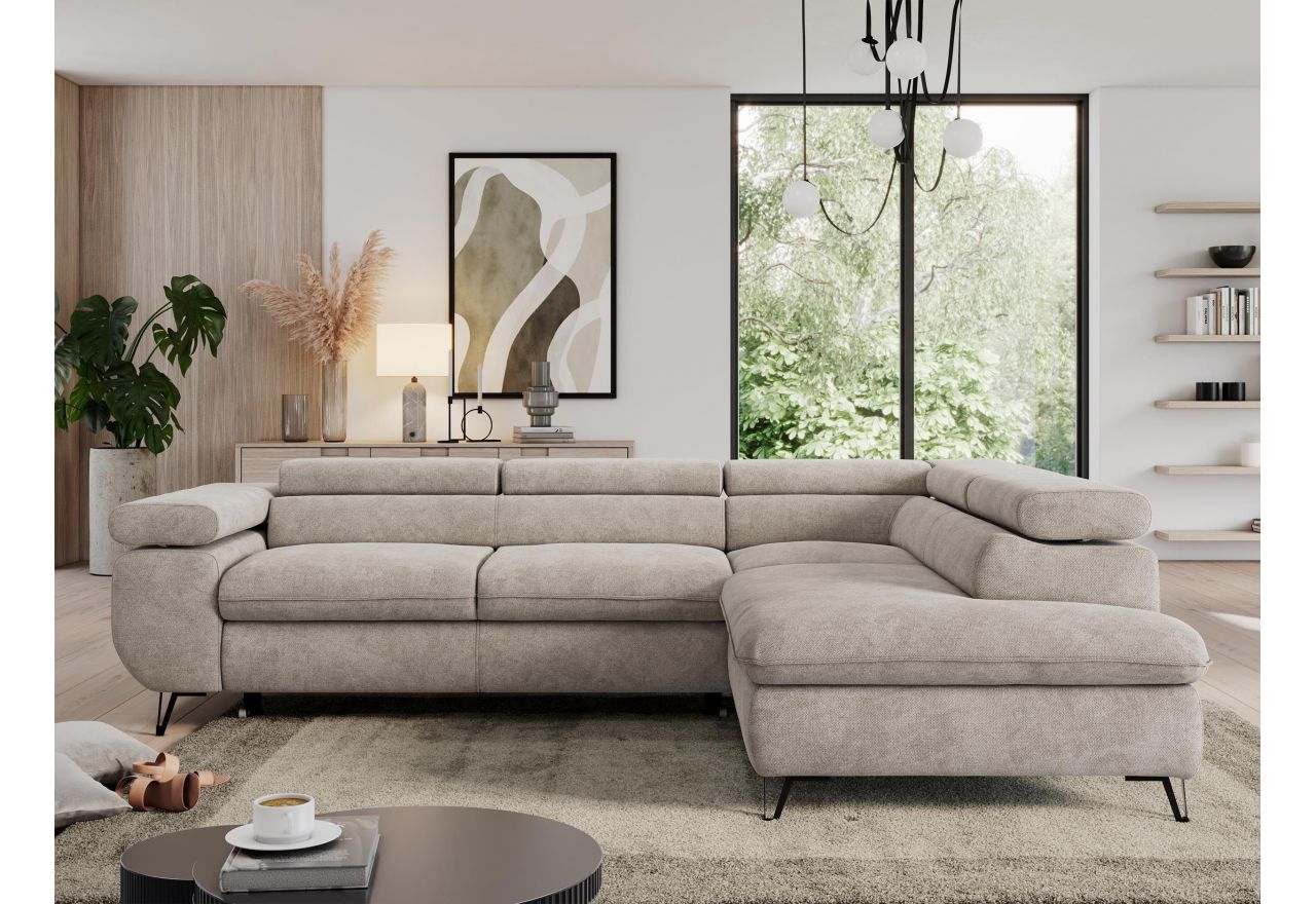 Narożnik PEDRO L to mebel, który łączy nowoczesny design z funkcjonalnością, tworząc elegancki punkt centralny w każdym salonie. Jego forma w kształcie litery L sprawia, że idealnie pasuje do przestronnych wnętrz, zapewniając wygodne miejsce do odpoczynku dla rodziny oraz gości. Narożnik wykonany jest w wysokiej jakości materiałach, z czarnymi metalowymi nóżkami, które nie tylko dodają nowoczesnego charakteru, ale również ułatwiają utrzymanie czystości w pomieszczeniu. Podczas zakupu należy wybrać stronę narożnika – lewą lub prawą.