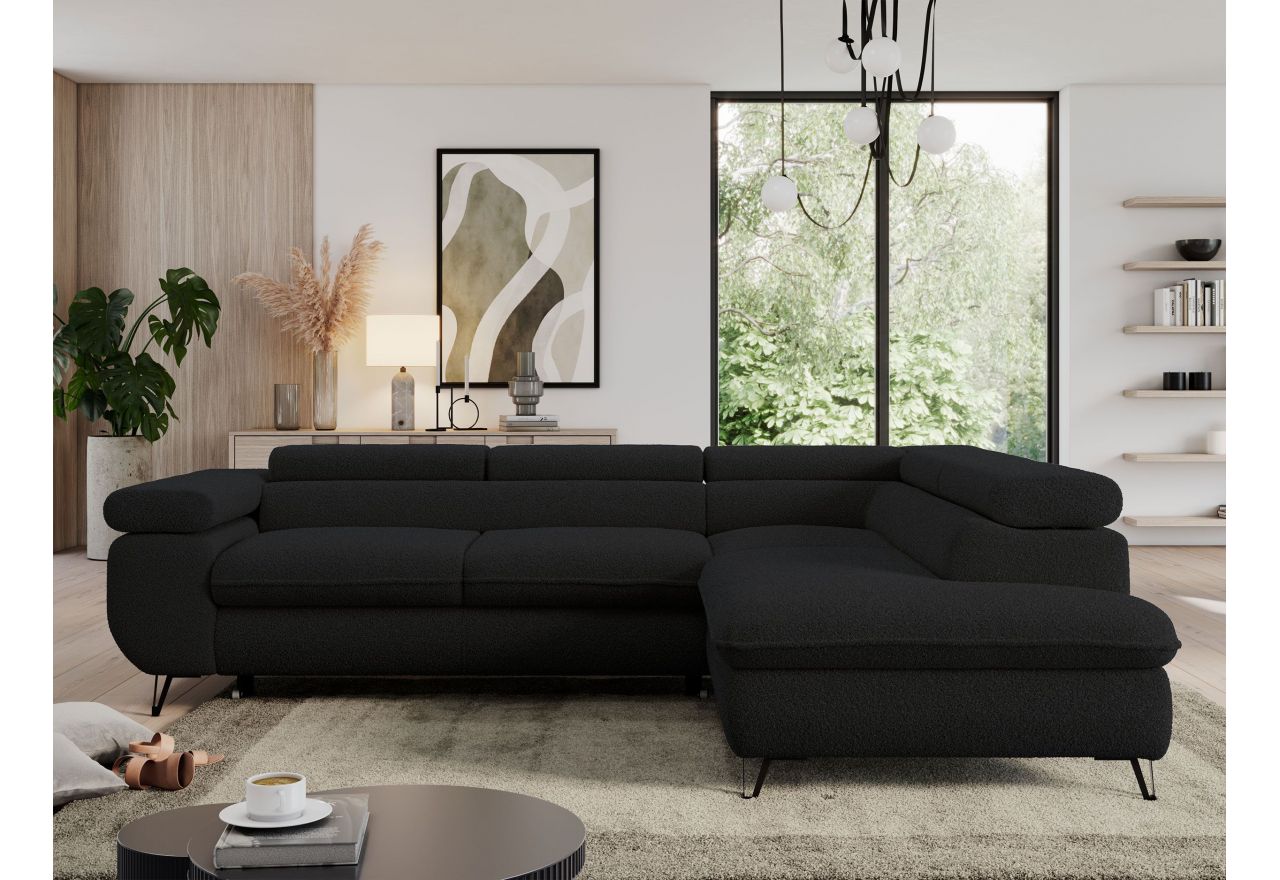Narożnik PEDRO L to mebel, który łączy nowoczesny design z funkcjonalnością, tworząc elegancki punkt centralny w każdym salonie. Jego forma w kształcie litery L sprawia, że idealnie pasuje do przestronnych wnętrz, zapewniając wygodne miejsce do odpoczynku dla rodziny oraz gości. Narożnik wykonany jest w wysokiej jakości materiałach, z czarnymi metalowymi nóżkami, które nie tylko dodają nowoczesnego charakteru, ale również ułatwiają utrzymanie czystości w pomieszczeniu. Podczas zakupu należy wybrać stronę narożnika – lewą lub prawą.
