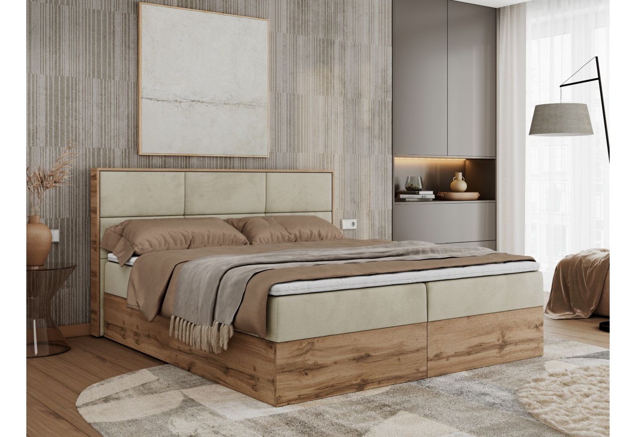 Główny materac kieszeniowy Multipocket dostarcza doskonałego wsparcia dla ciała, dzięki wysokoelastycznej piance T-30 co jest kluczowe dla zdrowego snu. Jego konstrukcja z niezależnymi kieszeniami minimalizuje przenoszenie ruchu. Dodatkowo, materac nawierzchniowy wykończony pianką T-25 zapewnia uczucie miękkości i komfortu, dostosowując się do kształtu ciała. Dwa pojemniki na pościel to praktyczne rozwiązanie, które pozwoli na łatwe przechowywanie pościeli i utrzymanie porządku. Automat na sprężynach sprawia, że otwieranie pojemników jest wygodne i szybkie. Tapicerowany zagłówek to prawdziwa ozdoba, która dodaje wnętrzu klasy i staje się centralnym punktem każdej sypialni. Łóżko kontynentalne posiada drewniane wykończenie na skrzyni oraz ramie wezgłowia. Dodaje wnętrzu ciepła i stylu, a nowoczesny design sprawia, że idealnie wpisuje się w różnorodne aranżacje.