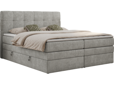 Główny materac kieszeniowy Multipocket dostarcza doskonałego wsparcia dla ciała, dzięki wysokoelastycznej piance T-30 co jest kluczowe dla zdrowego snu. Jego konstrukcja z niezależnymi kieszeniami minimalizuje przenoszenie ruchu. Dodatkowo, materac nawierzchniowy wykończony pianką T-25 zapewnia uczucie miękkości i komfortu, dostosowując się do kształtu ciała. Dwa pojemniki na pościel to praktyczne rozwiązanie, które pozwoli na łatwe przechowywanie pościeli i utrzymanie porządku. Automat na sprężynach sprawia, że otwieranie pojemników jest wygodne i szybkie. Tapicerowany zagłówek to prawdziwa ozdoba, która dodaje wnętrzu klasy i staje się centralnym punktem każdej sypialni. Łóżko kontynentalne posiada drewniane wykończenie na skrzyni oraz ramie wezgłowia. Dodaje wnętrzu ciepła i stylu, a nowoczesny design sprawia, że idealnie wpisuje się w różnorodne aranżacje.