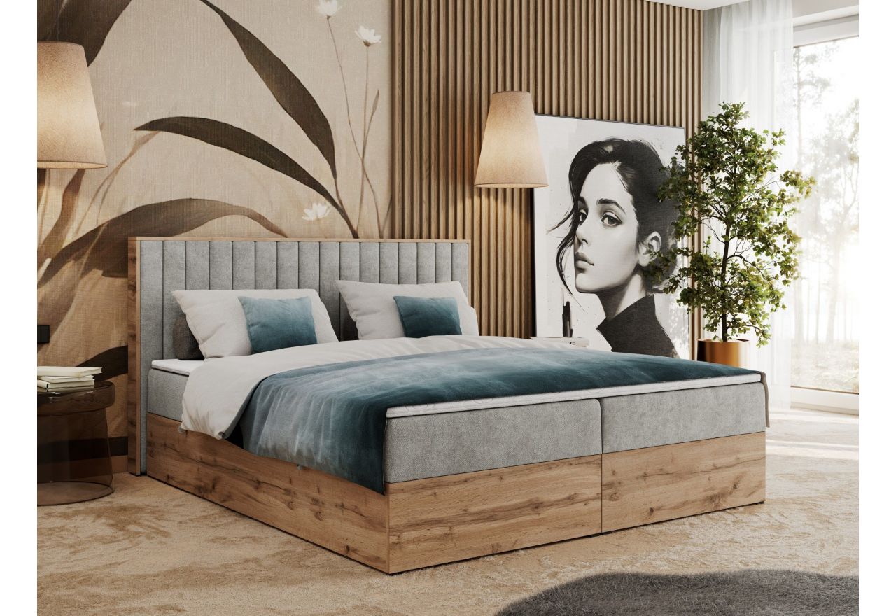 Główny materac kieszeniowy Multipocket dostarcza doskonałego wsparcia dla ciała, dzięki wysokoelastycznej piance T-30 co jest kluczowe dla zdrowego snu. Jego konstrukcja z niezależnymi kieszeniami minimalizuje przenoszenie ruchu. Dodatkowo, materac nawierzchniowy wykończony pianką T-25 zapewnia uczucie miękkości i komfortu, dostosowując się do kształtu ciała. Dwa pojemniki na pościel to praktyczne rozwiązanie, które pozwoli na łatwe przechowywanie pościeli i utrzymanie porządku. Automat na sprężynach sprawia, że otwieranie pojemników jest wygodne i szybkie. Tapicerowany zagłówek to prawdziwa ozdoba, która dodaje wnętrzu klasy i staje się centralnym punktem każdej sypialni. Łóżko kontynentalne posiada drewniane wykończenie na skrzyni oraz ramie wezgłowia. Dodaje wnętrzu ciepła i stylu, a nowoczesny design sprawia, że idealnie wpisuje się w różnorodne aranżacje.