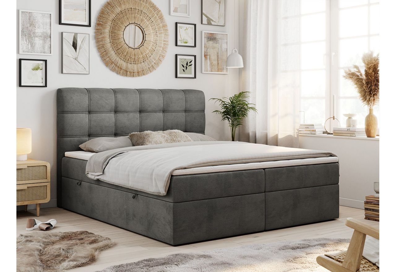 Główny materac kieszeniowy Multipocket dostarcza doskonałego wsparcia dla ciała, dzięki wysokoelastycznej piance T-30 co jest kluczowe dla zdrowego snu. Jego konstrukcja z niezależnymi kieszeniami minimalizuje przenoszenie ruchu. Dodatkowo, materac nawierzchniowy wykończony pianką T-25 zapewnia uczucie miękkości i komfortu, dostosowując się do kształtu ciała. Dwa pojemniki na pościel to praktyczne rozwiązanie, które pozwoli na łatwe przechowywanie pościeli i utrzymanie porządku. Automat na sprężynach sprawia, że otwieranie pojemników jest wygodne i szybkie. Tapicerowany, pikowany zagłówek to prawdziwa ozdoba, która dodaje wnętrzu klasy i staje się centralnym punktem każdej sypialni.