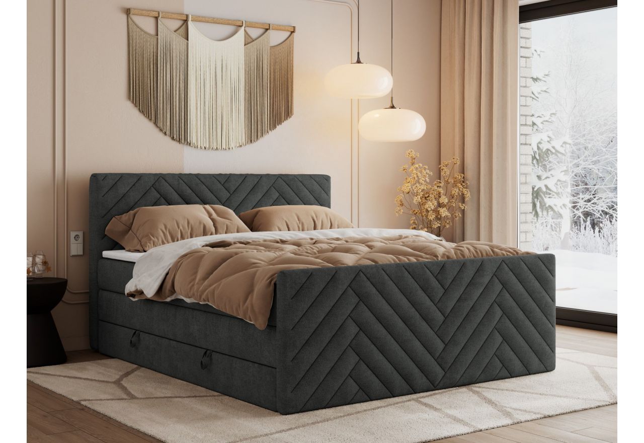 Łóżko kontynentalne PARIS KING DUO to idealne połączenie nowoczesnego designu i funkcjonalnej elegancji. Wyjątkowa konstrukcja, wysokiej jakości materiały oraz precyzyjne wykonanie sprawiają, że to łóżko staje się prawdziwym centrum sypialni, łącząc estetykę z komfortem na najwyższym poziomie. Elegancki zagłówek oraz dekoracyjny element przy nogach łóżka, wykończone w charakterystycznym wzorze jodełki, dodają pomieszczeniu klasy i luksusu. Łóżko to nie tylko estetyczny dodatek, ale także funkcjonalne rozwiązanie do Twojej sypialni.