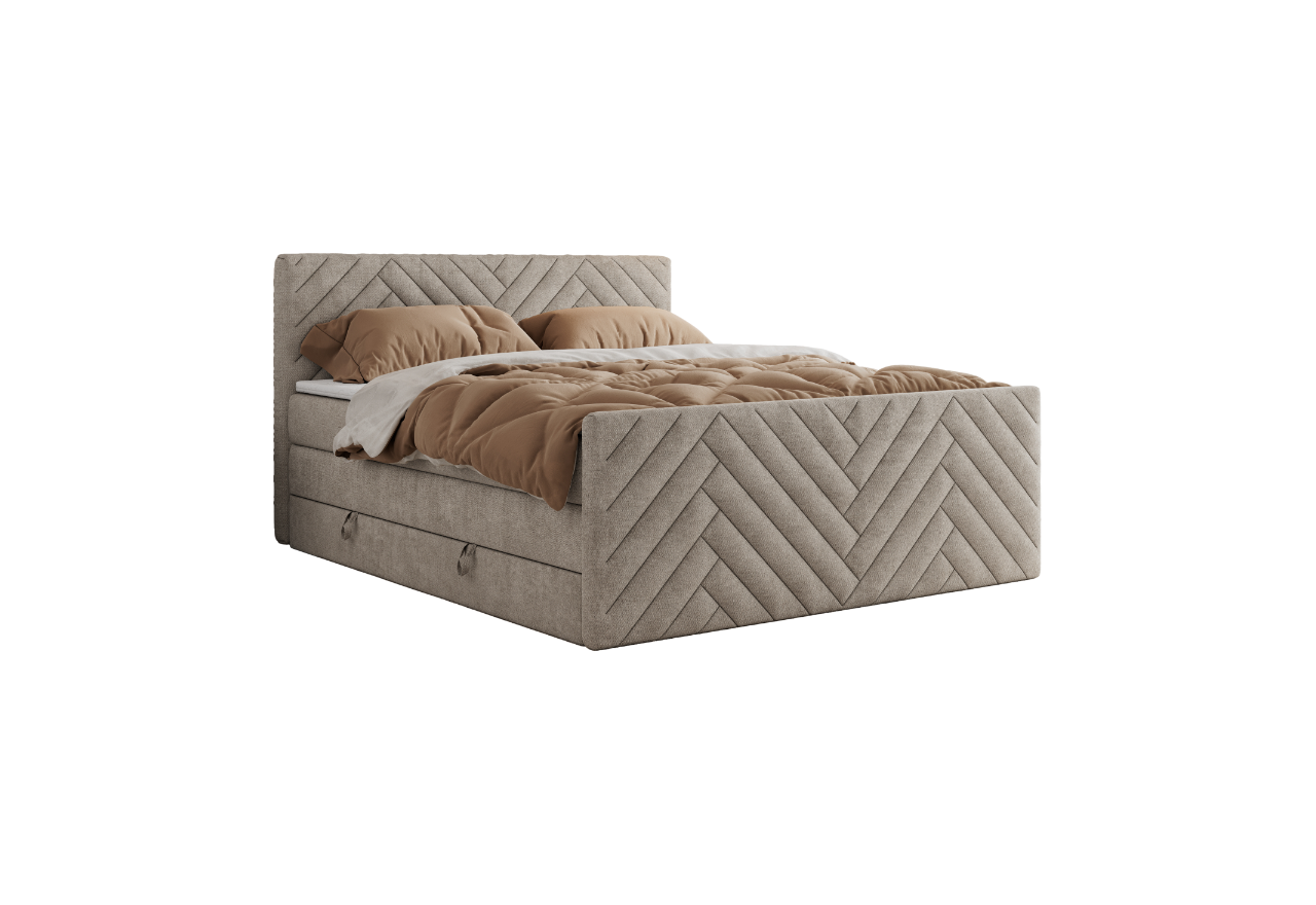 Łóżko kontynentalne PARIS KING DUO to idealne połączenie nowoczesnego designu i funkcjonalnej elegancji. Wyjątkowa konstrukcja, wysokiej jakości materiały oraz precyzyjne wykonanie sprawiają, że to łóżko staje się prawdziwym centrum sypialni, łącząc estetykę z komfortem na najwyższym poziomie. Elegancki zagłówek oraz dekoracyjny element przy nogach łóżka, wykończone w charakterystycznym wzorze jodełki, dodają pomieszczeniu klasy i luksusu. Łóżko to nie tylko estetyczny dodatek, ale także funkcjonalne rozwiązanie do Twojej sypialni.