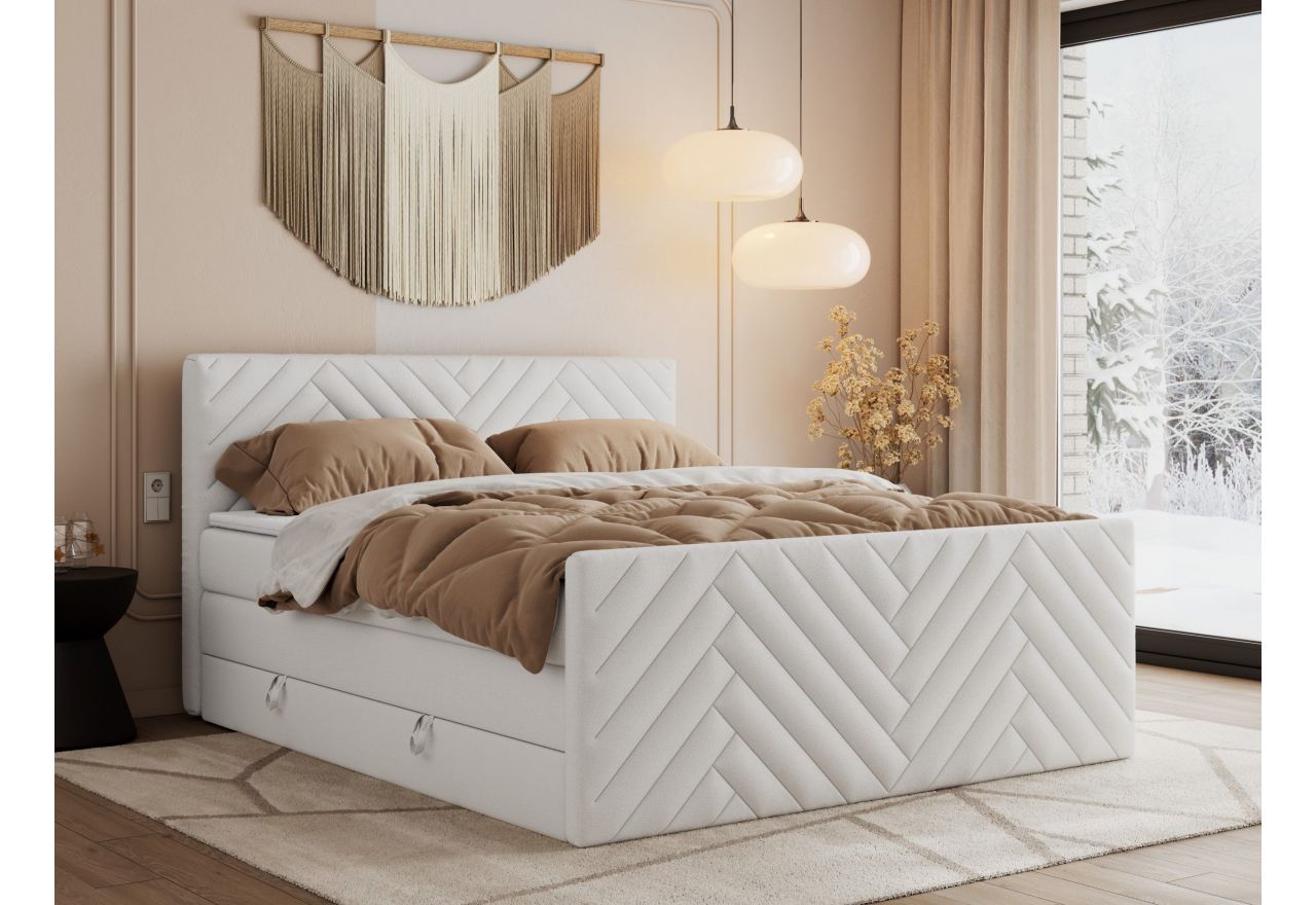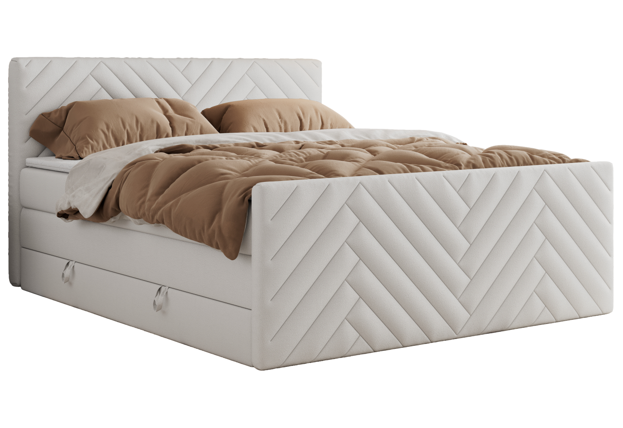 Łóżko kontynentalne PARIS KING DUO to idealne połączenie nowoczesnego designu i funkcjonalnej elegancji. Wyjątkowa konstrukcja, wysokiej jakości materiały oraz precyzyjne wykonanie sprawiają, że to łóżko staje się prawdziwym centrum sypialni, łącząc estetykę z komfortem na najwyższym poziomie. Elegancki zagłówek oraz dekoracyjny element przy nogach łóżka, wykończone w charakterystycznym wzorze jodełki, dodają pomieszczeniu klasy i luksusu. Łóżko to nie tylko estetyczny dodatek, ale także funkcjonalne rozwiązanie do Twojej sypialni.