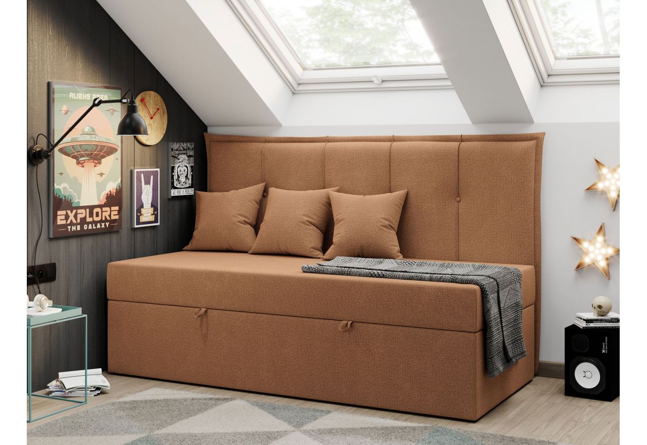 Poprzedni arrow_back_ios_newNastępny arrow_forward_iosŁóżko młodzieżowe BANCO 90x200 - H3 - pomarańczowy, struktura - topper T25