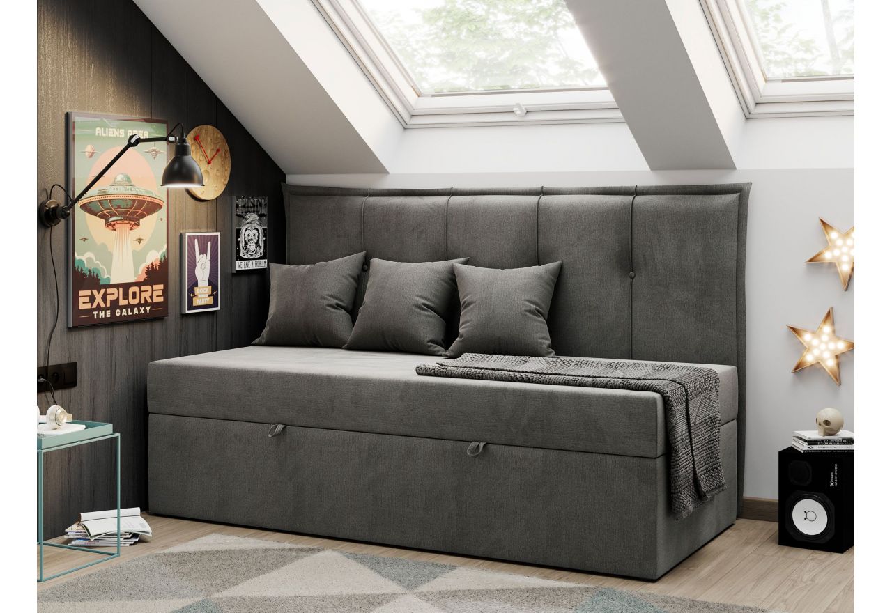 Poprzedni arrow_back_ios_newNastępny arrow_forward_iosŁóżko młodzieżowe BANCO 90x200 - H3 - ciemnoszary, welwet - topper T25