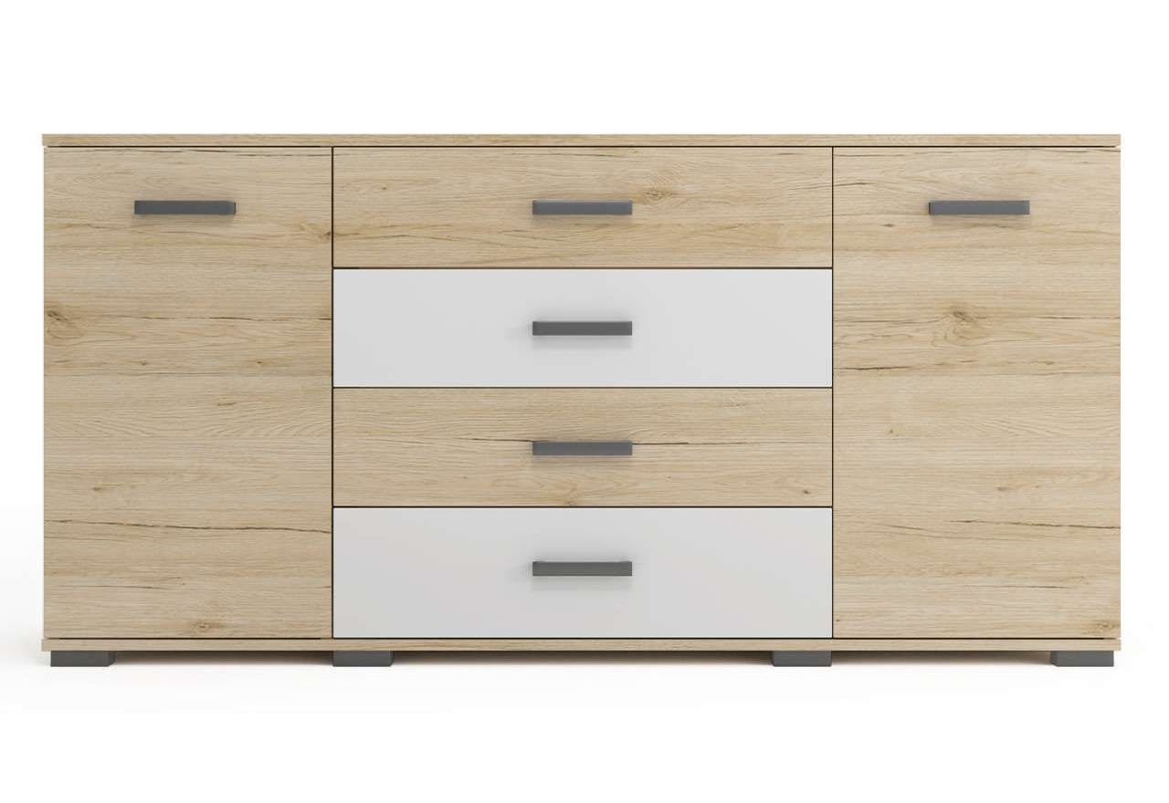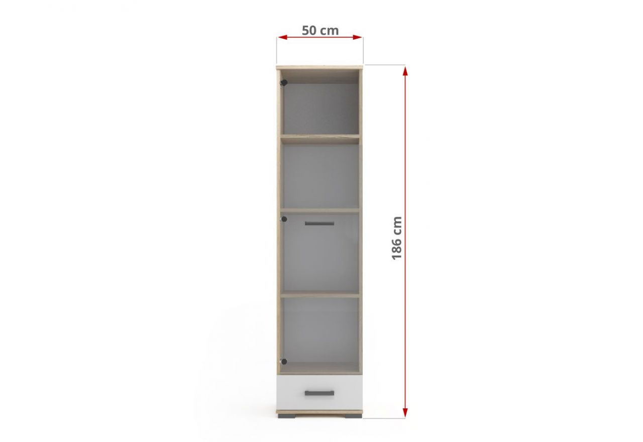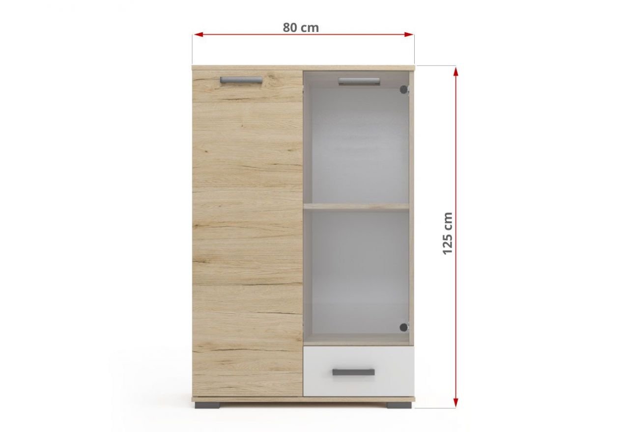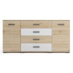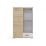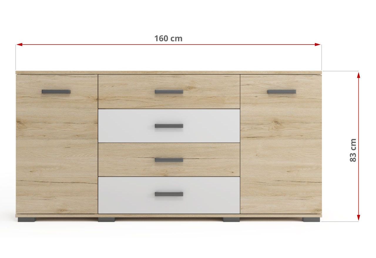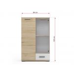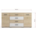 Przedstawione meble posiadają korpus dąb sonoma oraz fronty również dąb sonoma w połączeniu z białymi wstawkami. Istnieje możliwość zmiany koloru według dostępnej kolorystyki. Inne kolory są pokazane w zakładce obok z odpowiednimi podpisami nazw. Wybór połączenia kolorystycznego odbywa się na samej górze strony. Dobierz kolory, które spełnią Twoje oczekiwania!