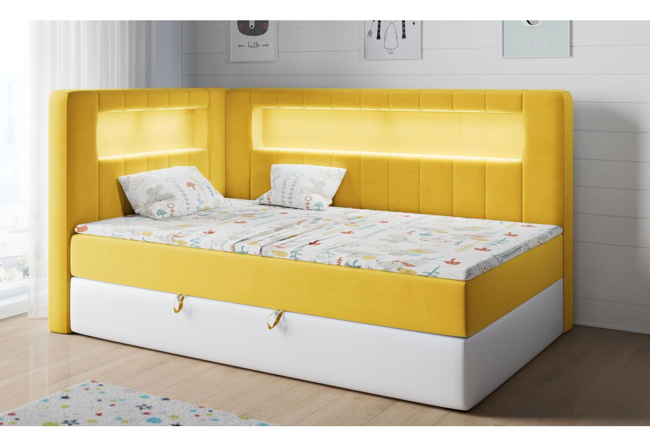 Poprzedni arrow_back_ios_newNastępny arrow_forward_iosŁóżko młodzieżowe JUNIOR GOLD 3 90x200 - H3 - żółty, biały, welwet, ekoskóra - strona lewa