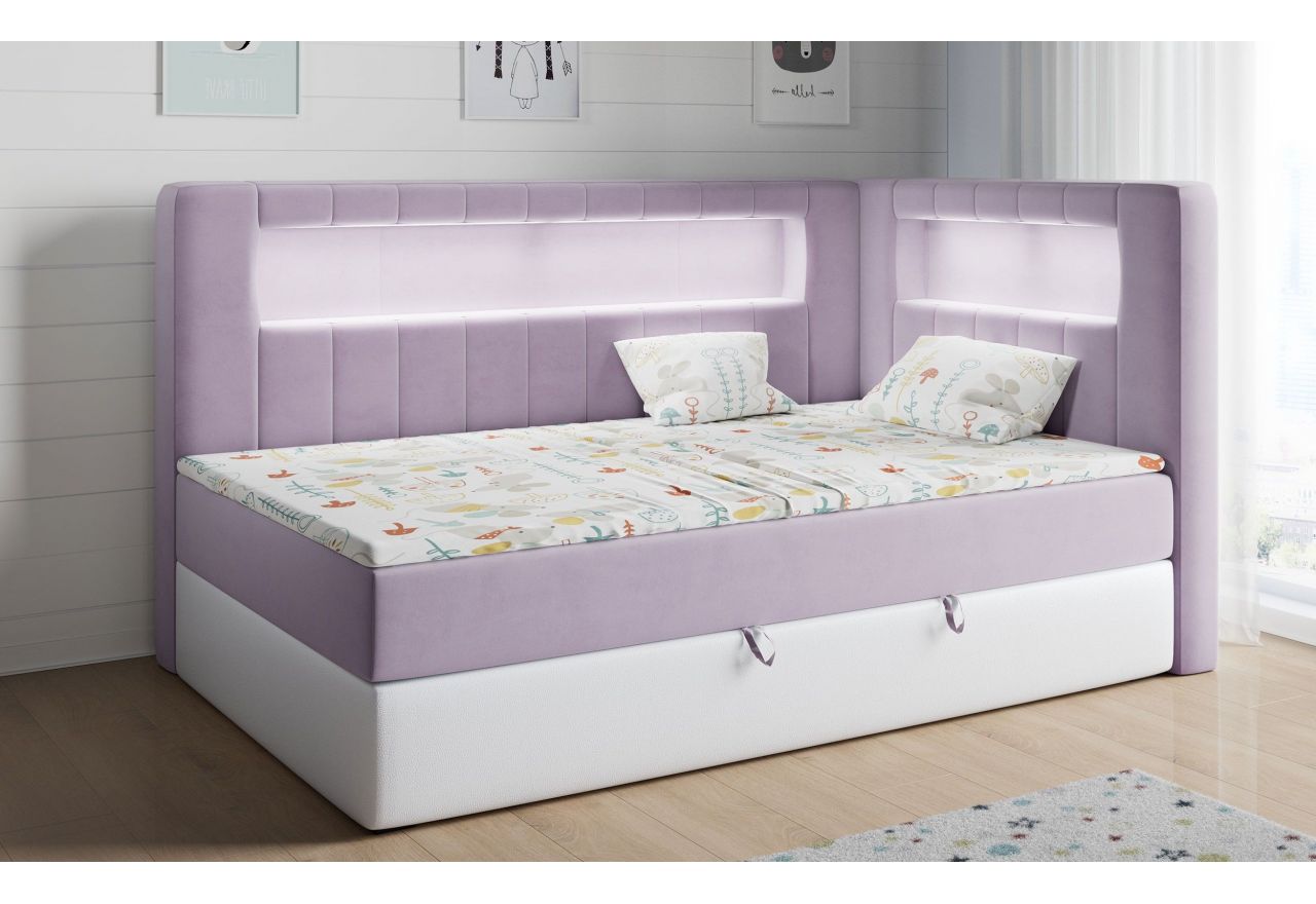 Główny materac kieszeniowy Pocket dostarcza doskonałego wsparcia dla ciała, dzięki wysokoelastycznej piance T-30 co jest kluczowe dla zdrowego snu. Jego konstrukcja z niezależnymi kieszeniami minimalizuje przenoszenie ruchu. Dodatkowo, materac nawierzchniowy wykończony pianką T-25 zapewnia uczucie miękkości i komfortu, dostosowując się do kształtu ciała. Pojemnik na pościel to praktyczne rozwiązanie, które pozwoli na łatwe przechowywanie pościeli i utrzymanie porządku. Automat na sprężynach sprawia, że otwieranie pojemnika jest wygodne i szybkie. Tapicerowany zagłówek razem z bokiem łóżka to prawdziwe ozdoby, które dodają wnętrzu klasy i stają się centralnym punktem każdej młodzieńczej sypialni. W wezgłowiu i boku znajduje się praktyczna wnęka z oświetleniem LED.