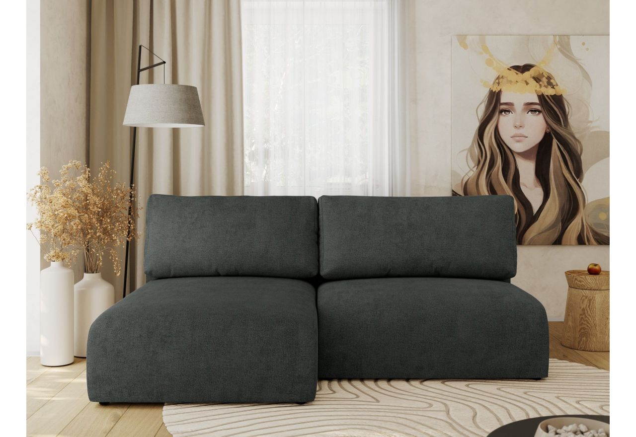 Konstrukcja narożnika opiera się na wysokiej jakości sprężynach falistych oraz trwałej piance CME35/45, co zapewnia optymalne podparcie i komfort użytkowania. Narożnik posiada funkcję spania z mechanizmem DL, dzięki czemu można go łatwo przekształcić w wygodne łóżko – idealne dla gości lub codziennego odpoczynku. Luźne poduszki oparciowe można szybko usunąć, co dodatkowo ułatwia korzystanie z funkcji spania.
