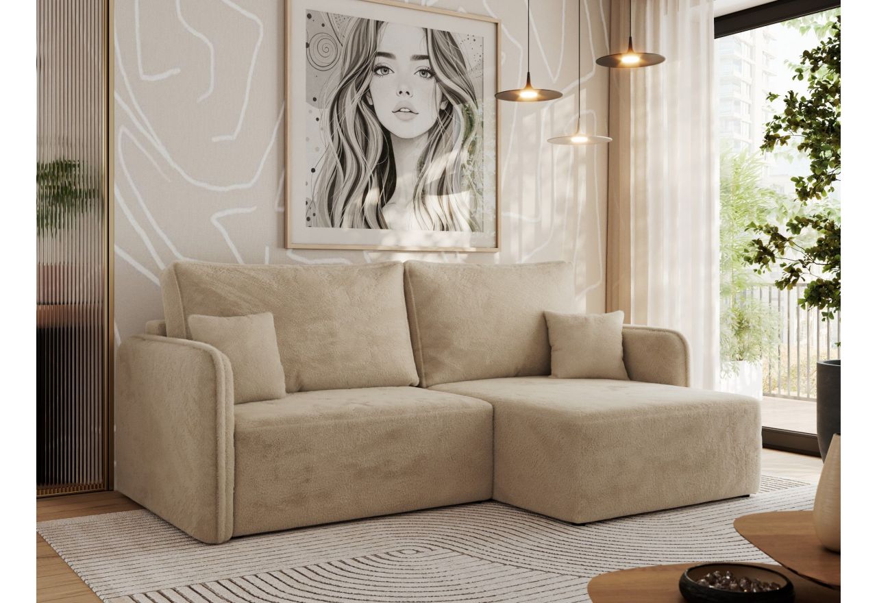 Narożnik MESTO L to idealne rozwiązanie dla Twojego wnętrza. Dzięki nowoczesnej konstrukcji w kształcie litery L doskonale wpasuje się zarówno w przestronne, jak i bardziej kompaktowe salony, oferując wygodne miejsce do codziennego relaksu. Jego wypełnienie stanowi wysokiej jakości pianka CME30 oraz sprężyny faliste, które gwarantują elastyczność, odpowiednie podparcie ciała oraz długą żywotność mebla. Solidna konstrukcja oparta na drewnianym stelażu z dodatkowymi elementami z płyty MDF i płyty wiórowej zapewnia stabilność i trwałość przez lata. To nie tylko elegancki mebel wypoczynkowy, ale także praktyczne łóżko dla gości lub codziennego użytkowania. Wyposażony w automat DL, pozwala na szybkie i bezproblemowe rozłożenie do funkcji spania – wystarczy jeden ruch, aby zyskać wygodną powierzchnię do snu. Dodatkowo, pojemnik na pościel umieszczony w skrzyni narożnika umożliwia przechowywanie kołder, poduszek i innych tekstyliów, pomagając utrzymać porządek w salonie. Jego nowoczesna linia, minimalistyczne detale i ergonomiczna konstrukcja sprawiają, że pasuje do różnych stylów aranżacyjnych.