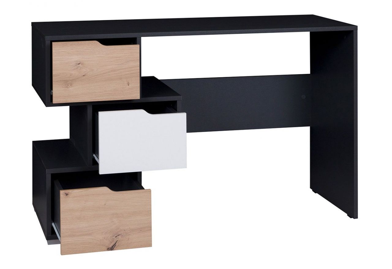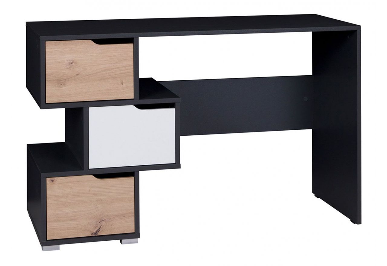 Nowoczesne młodzieżowe biurko komputerowe z pojemnymi szufladami - GETA - Grafit / Biały / Dąb Artisan