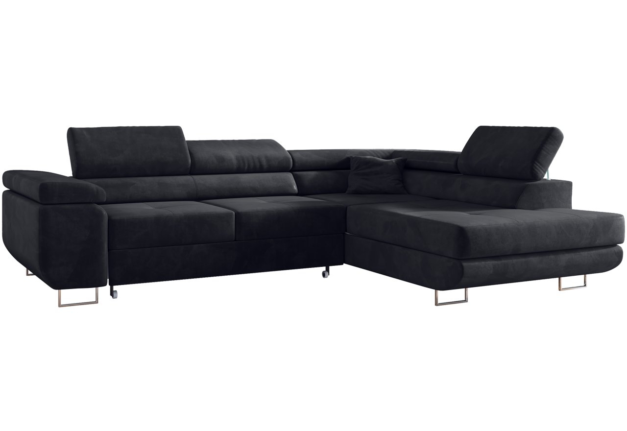 Konstrukcja narożnika opiera się na wysokiej jakości sprężynach oraz trwałej piance wysokoelastycznej T30, co zapewnia komfort użytkowania oraz odpowiednie podparcie. Narożnik posiada funkcję spania, umożliwiając szybkie i wygodne przekształcenie go w łóżko, co czyni go idealnym rozwiązaniem dla gości lub codziennego użytku. Dodatkowym atutem jest praktyczny pojemnik na pościel, który pomaga w utrzymaniu porządku i optymalnym wykorzystaniu przestrzeni. Automat na sprężynach sprawia, że otwieranie pojemnika jest wygodne i szybkie. Dzięki swojej funkcjonalności i estetycznemu designowi, stanowi harmonijne połączenie komfortu i praktyczności.