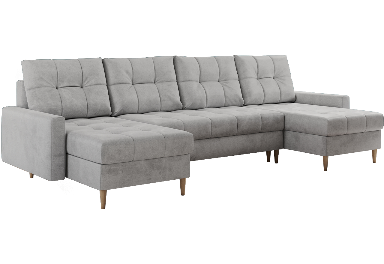 Zapoznaj się z doskonałym połączeniem komfortu i elegancji w narożniku ASTRA U! Dzięki sprężynom bonell i tapicerowanym plecom, zapewnia on niezrównany relaks i wygodę. Jego uniwersalny design, drewniane nóżki oraz luźne poduszki umożliwiają dopasowanie do różnych aranżacji wnętrz.