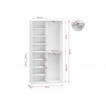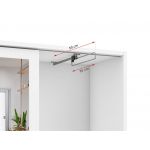 Jeśli chodzi o wymiary szafy przesuwnej, przedstawiają się one następująco: wysokość mieści się w granicach 205 cm, szerokość wynosi 95 cm, natomiast głębokość to 40 cm. We wnętrzu mebla znajduje się wiele praktycznych półek, z których najmniejsza ma 23 cm wysokości i 44,5 cm szerokości, z kolei największa 103,5 cm wysokości i 44,5 cm szerokości. Jeśli interesują Państwa większe garderoby, w naszej ofercie model MKS 02 można zamówić również w wersji 140 i 190 cm szerokości.