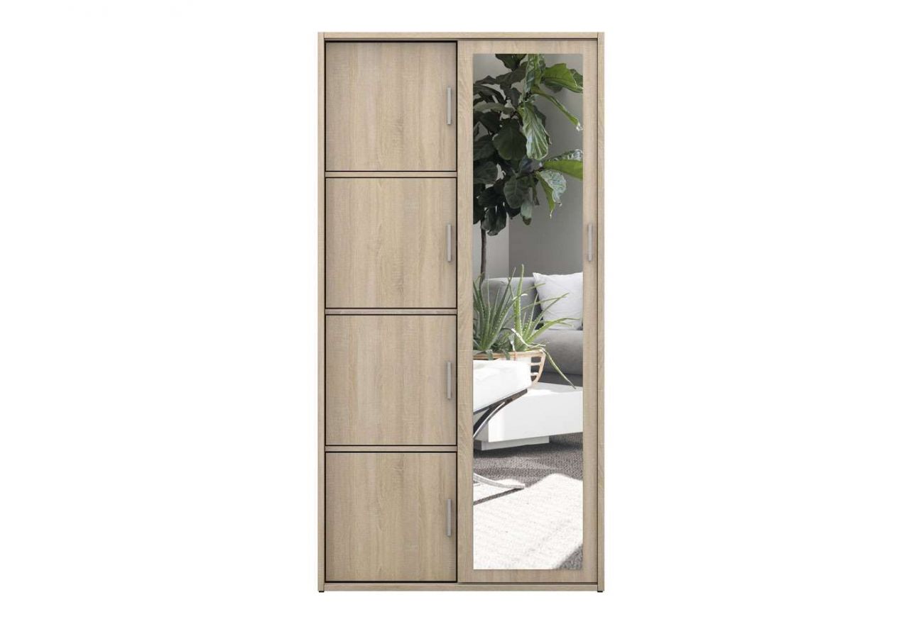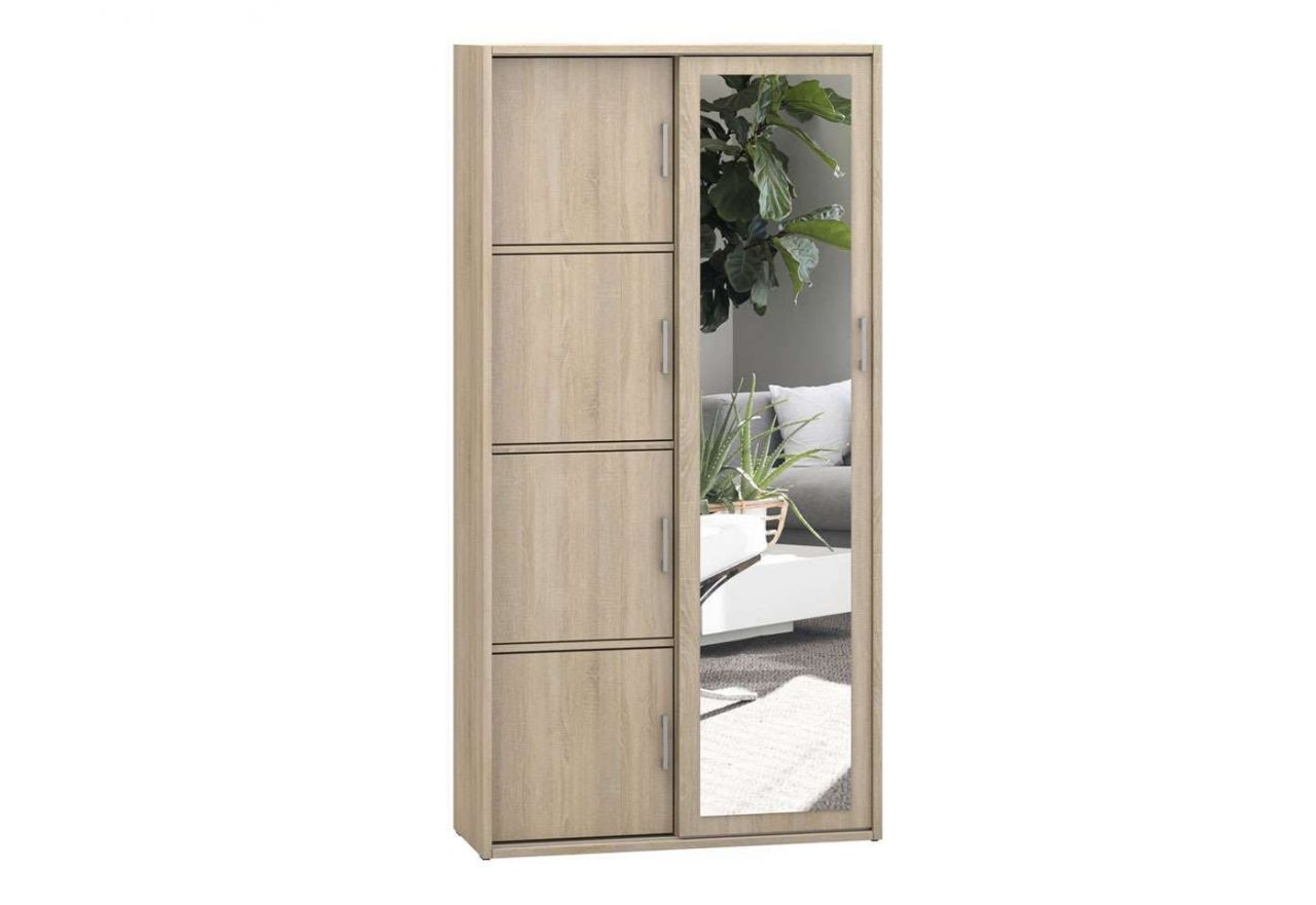 Nowoczesna garderoba z głębokimi półkami i lustrem do pokoju - MKS Dąb Sonoma, 95 cm