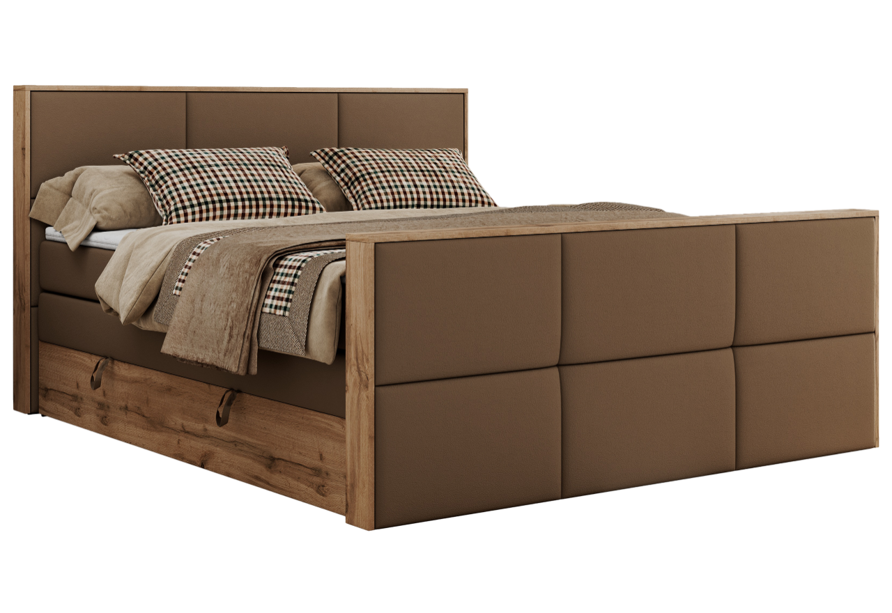 Główny materac kieszeniowy Multipocket dostarcza doskonałego wsparcia dla ciała, dzięki wysokoelastycznej piance T-30 co jest kluczowe dla zdrowego snu. Jego konstrukcja z niezależnymi kieszeniami minimalizuje przenoszenie ruchu. Łóżko wyposażone w 2 poziomy materacy to rozwiązanie podnoszące znacząco komfort snu. Dwa pojemniki na pościel to praktyczne rozwiązanie, które pozwoli na łatwe przechowywanie pościeli i utrzymanie porządku. Automat na sprężynach sprawia, że otwieranie pojemników jest wygodne i szybkie. Łóżko kontynentalne posiada drewniane wykończenie na skrzyni oraz ramie wezgłowia. Dodaje wnętrzu ciepła i stylu, a nowoczesny design sprawia, że idealnie wpisuje się w różnorodne aranżacje.