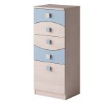 Wysoka wąska komoda z szufladami w niebieskiej kolorystyce - TUNGA Dąb Santana / Niebieski