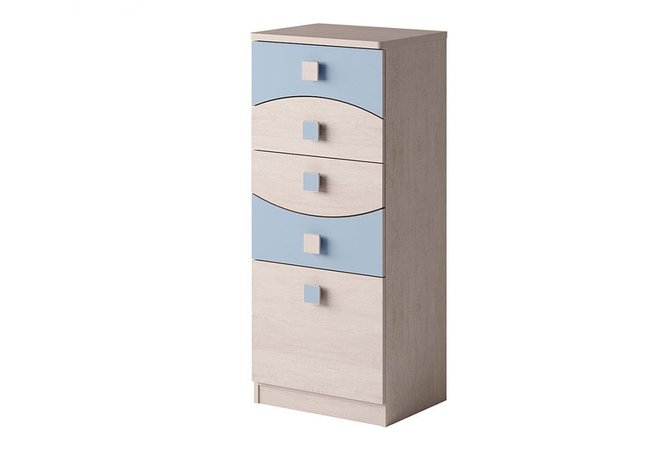 Poprzedni arrow_back_ios_newNastępny arrow_forward_iosWysoka wąska komoda z szufladami w niebieskiej kolorystyce - TUNGA Dąb Santana / Niebieski