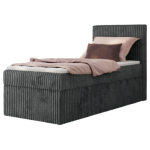 Do łóżka kontynentalnego TILIANO możesz dobrać materac nawierzchniowy (topper) według swoich preferencji: standardowy T-25, który zapewnia przyjemną sprężystość i miękkość, idealną do codziennego komfortowego snu, lub materac Visco, wykonany z pianki pamięciowej, dopasowujący się dokładnie do kształtu ciała i redukujący punkty nacisku. Dostępne twardości materaca H3 lub H4 pozwalają dobrać łóżko pod kątem indywidualnych preferencji i potrzeb zdrowotnych. Praktyczny pojemnik na pościel oferuje pojemne miejsce do przechowywania — możliwość wyboru otwierania z lewej lub prawej strony. Tapicerowane, wysokie wezgłowie z pionowymi przeszyciami nadaje całości elegancki, nowoczesny charakter, a miękka sztruksowa tapicerka dodaje przytulności i klasy.