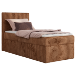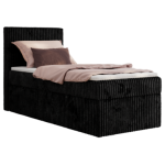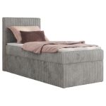 Do łóżka kontynentalnego TILIANO możesz dobrać materac nawierzchniowy (topper) według swoich preferencji: standardowy T-25, który zapewnia przyjemną sprężystość i miękkość, idealną do codziennego komfortowego snu, lub materac Visco, wykonany z pianki pamięciowej, dopasowujący się dokładnie do kształtu ciała i redukujący punkty nacisku. Dostępne twardości materaca H3 lub H4 pozwalają dobrać łóżko pod kątem indywidualnych preferencji i potrzeb zdrowotnych. Praktyczny pojemnik na pościel oferuje pojemne miejsce do przechowywania — możliwość wyboru otwierania z lewej lub prawej strony. Tapicerowane, wysokie wezgłowie z pionowymi przeszyciami nadaje całości elegancki, nowoczesny charakter, a miękka sztruksowa tapicerka dodaje przytulności i klasy.
