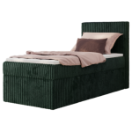 Do łóżka kontynentalnego TILIANO możesz dobrać materac nawierzchniowy (topper) według swoich preferencji: standardowy T-25, który zapewnia przyjemną sprężystość i miękkość, idealną do codziennego komfortowego snu, lub materac Visco, wykonany z pianki pamięciowej, dopasowujący się dokładnie do kształtu ciała i redukujący punkty nacisku. Dostępne twardości materaca H3 lub H4 pozwalają dobrać łóżko pod kątem indywidualnych preferencji i potrzeb zdrowotnych. Praktyczny pojemnik na pościel oferuje pojemne miejsce do przechowywania — możliwość wyboru otwierania z lewej lub prawej strony. Tapicerowane, wysokie wezgłowie z pionowymi przeszyciami nadaje całości elegancki, nowoczesny charakter, a miękka sztruksowa tapicerka dodaje przytulności i klasy.