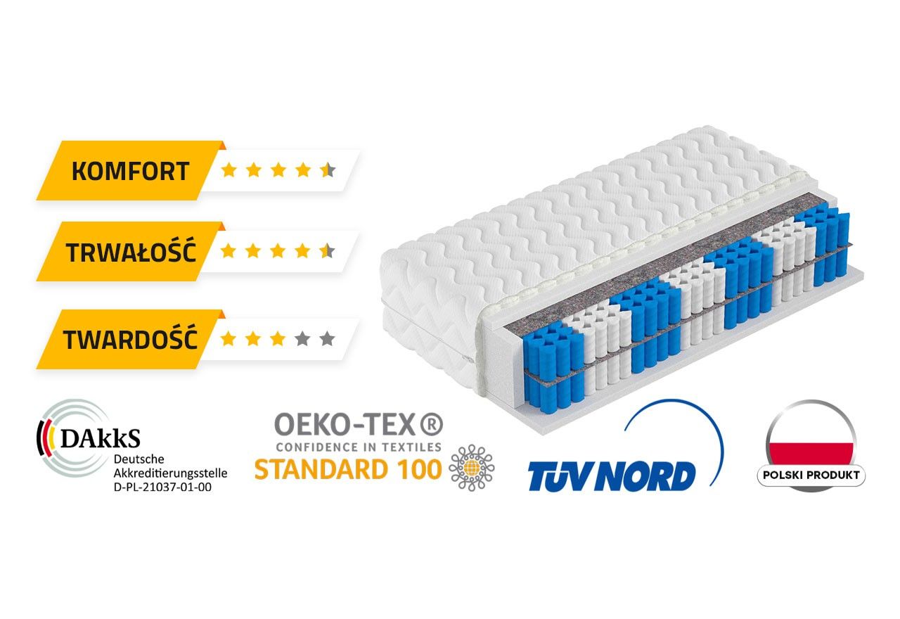 - Przekładka tapicerska - zwiększona wytrzymałość materaca przez oddzielenie wkładu sprężynowego od pianki