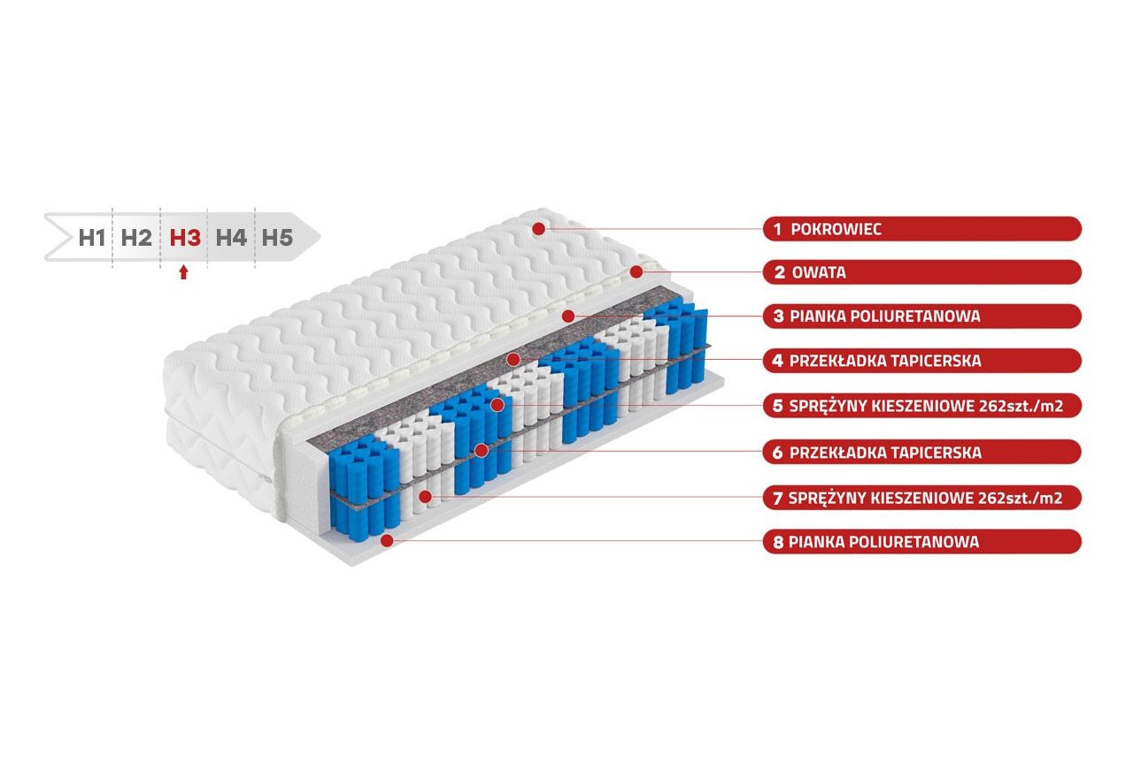 Popularnością cieszą się materace średnio-twarde H3 z siedmioma strefami twardości.