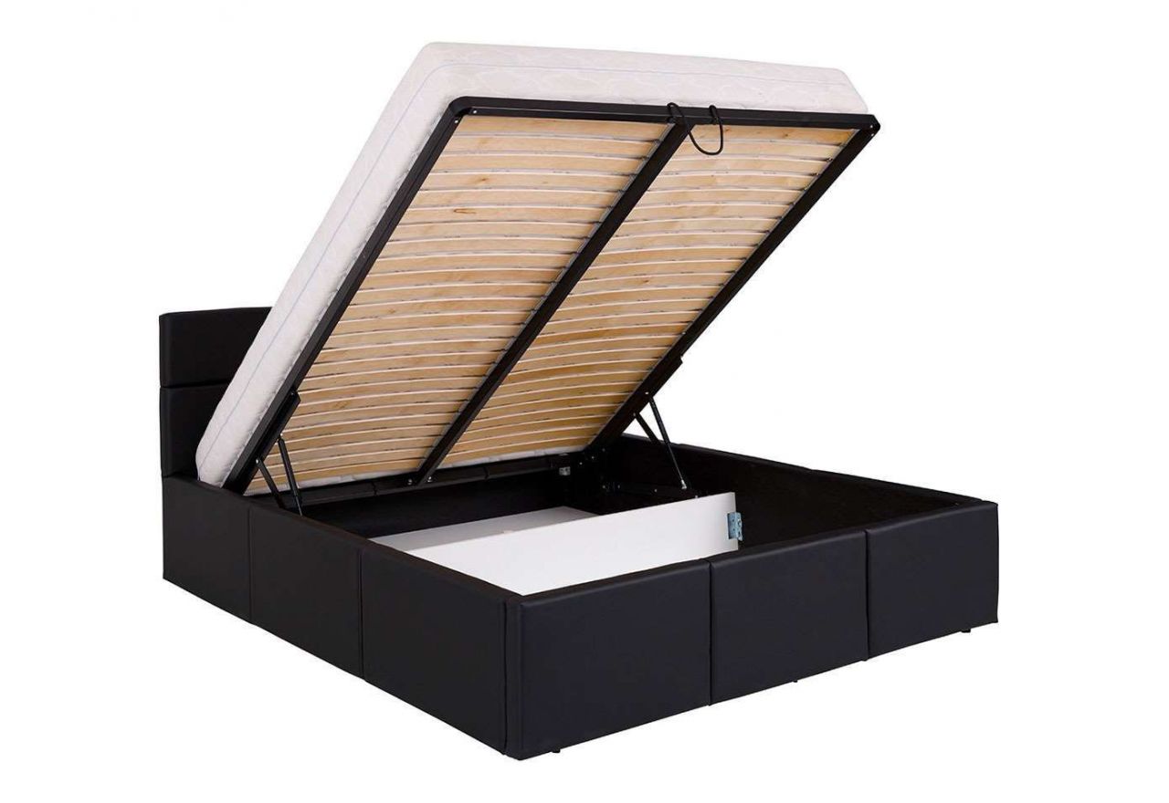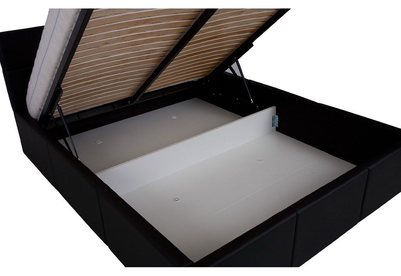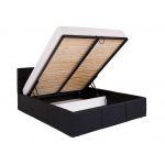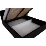 Łóżko tapicerowane posiadają pojemnik na pościel oraz metalowy stelaż. Otwieranie łóżka jest od strony dolnej do góry.