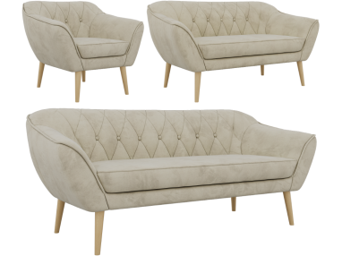 Zestaw mebli PIRS w klasycznej konfiguracji 1-2-3 to ostateczne rozwiązanie dla całościowej i stylowej aranżacji salonu w stylu skandynawskim. Składający się z fotela, sofy dwuosobowej oraz sofy trzyosobowej, komplet ten tworzy w pomieszczeniu atmosferę spokoju, estetycznej spójności i nordyckiej elegancji. To idealny wybór dla osób, które chcą urządzić dom w sposób przemyślany i harmonijny.