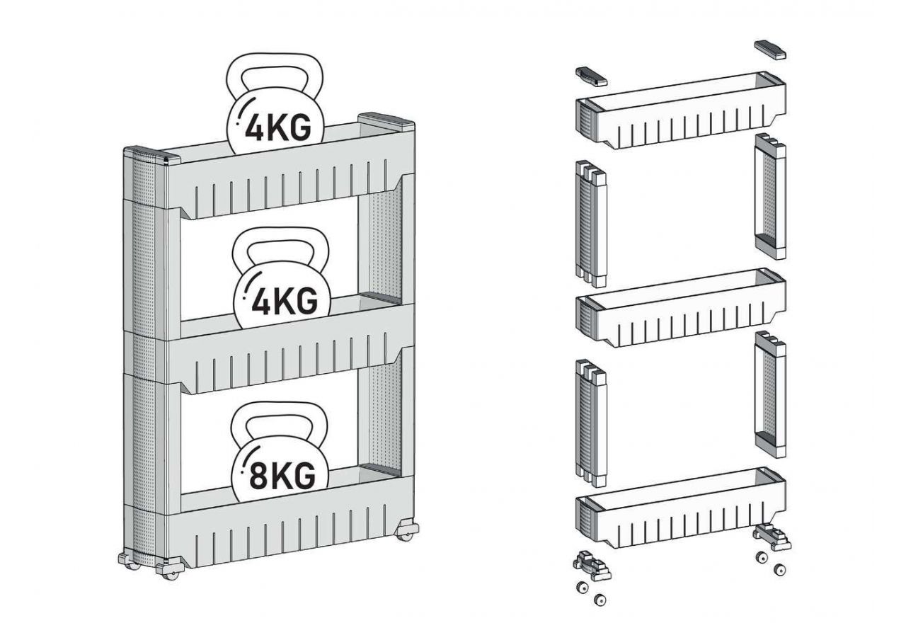 Regał możemy wykorzystać w różnych pomieszczeniach. Idealnie będzie pasować do kuchni, łazienki, salonu czy jako organizer na kosmetyki lub zabawki dla dziecka. Do dyspozycji masz trzy pojemne półki. Pozwolą Ci na uporządkowanie drobniejszych rzeczy i trzymanie ich w pobliżu. Jego największą zaletą jest jego modułowa konstrukcja. W dowolnym momencie możesz dodać lub zdjąć półki, kiedy tylko tego potrzebujesz.