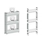 Szafka jest modułowa, każda z półek jest niezależna i można jej używać osobno. Dlatego szafkę można zmontować np. z dwoma półkami a trzeciej użyć osobno jako wolnostojącego koszyczka.