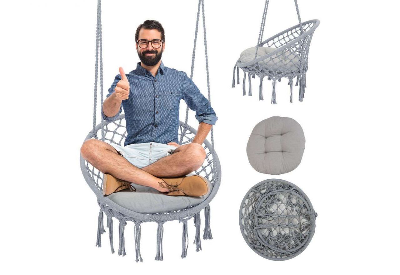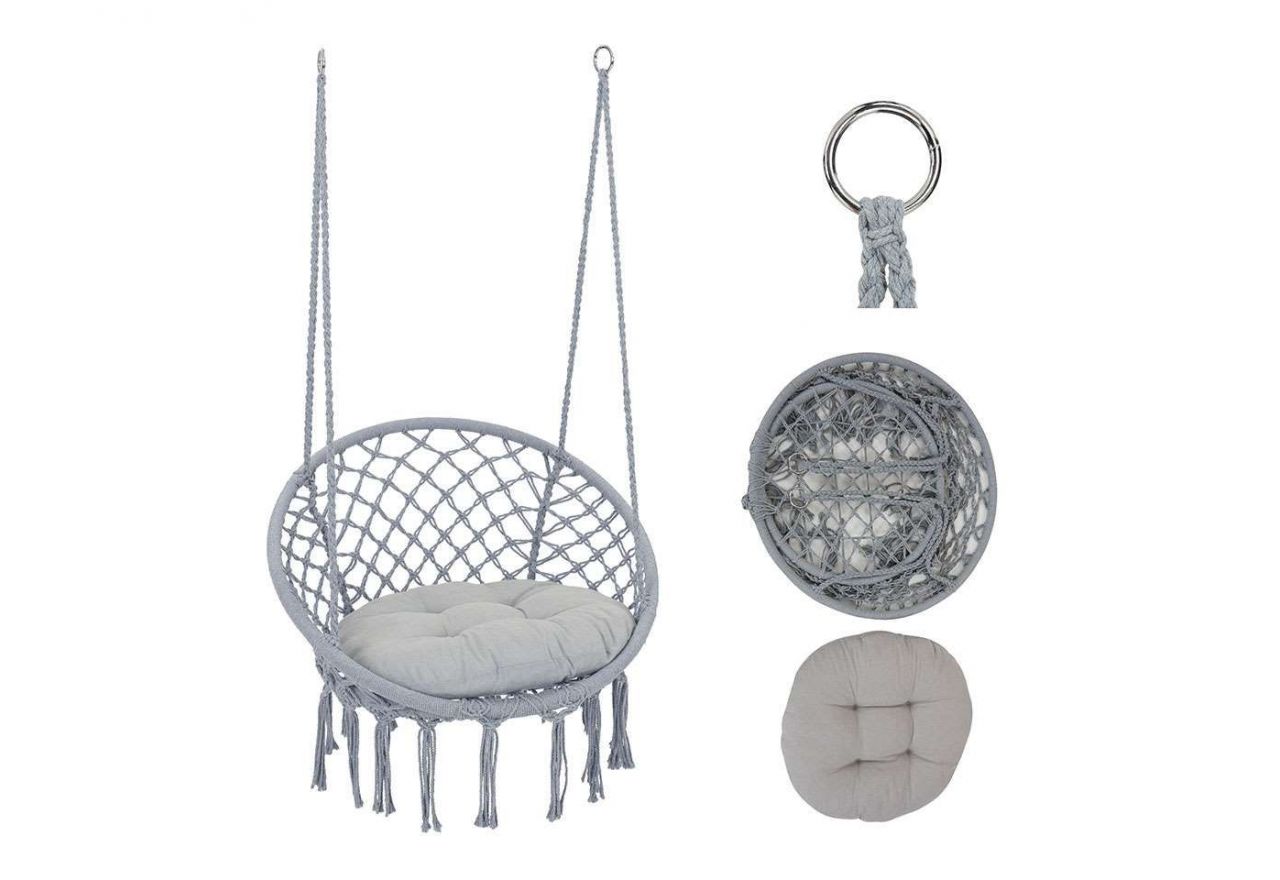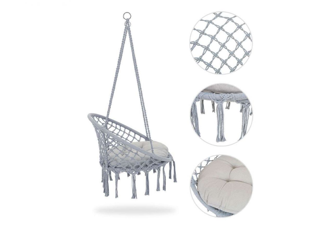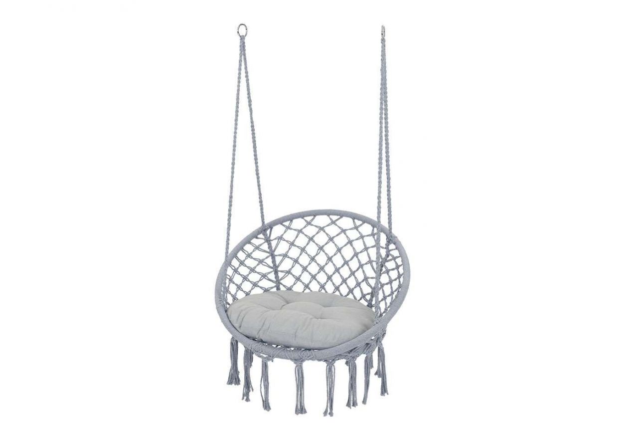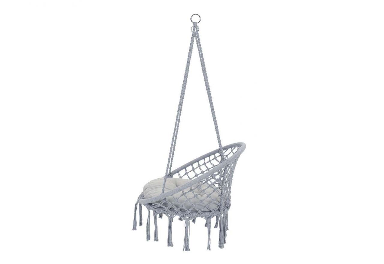 Stylowy wiszący fotel ogrodowy bocianie gniazdo w stylu BOHO z poduszką - szary