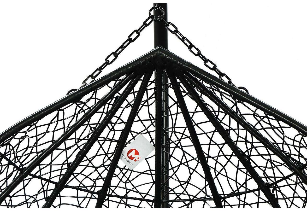 Fotel wiszący jajo ogrodowe o niezwykle mocnych techno ratanowych splotach, z poduszkami o wodoodpornych właściwościach. Dzięki wolnostojącemu stojakowi możesz ustawić huśtawkę w dowolnym miejscu na ogrodzie a w chłodnych dniach z łatwością przenieść do swojego salonu i relaksować się w nim przed ulubionym serialem. Solidny stelaż wykonany z wysokiej jakości stali oraz podstawa o średnicy ponad 100 cm pozwoli na stabilne podtrzymanie kosza, w którym chwile relaksu znajdą osoby z wagą nawet do 200 kg.