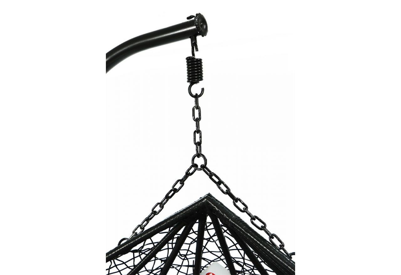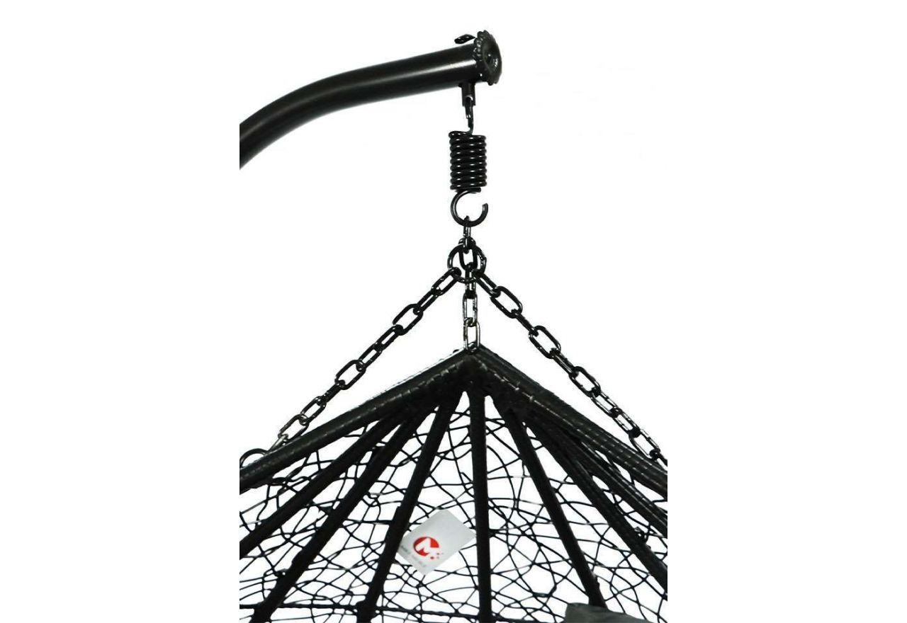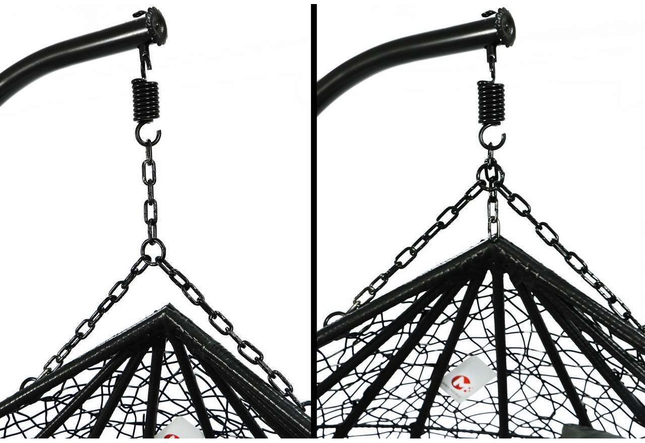 Fotel przymocowany jest do stelaża za pomocą łańcuszka i sprężyny, innowacyjne rozwiązanie mocowania pozwala na szybki demontaż huśtawki oraz powieszenie jej w dowolnym miejscu np. przymocowanie w domu do sufitu w ogrodzie do drewnianych belek itd. Specjalnie opatentowany system mocowania pozwoli na swobodne huśtanie się wewnątrz "jaja". Wykonany z najwyższej klasy materiałów jest odporny na wszelkiego rodzaju warunki atmosferyczne.