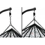 Możliwość regulacji wysokości zawieszenia kosza za pomocą dołączonego do zestawu solidnego łańcuszka. Wystarczy zawiesić kosz na niższym oczku łańcucha, aby zmienić wysokość wiszenia kosza.