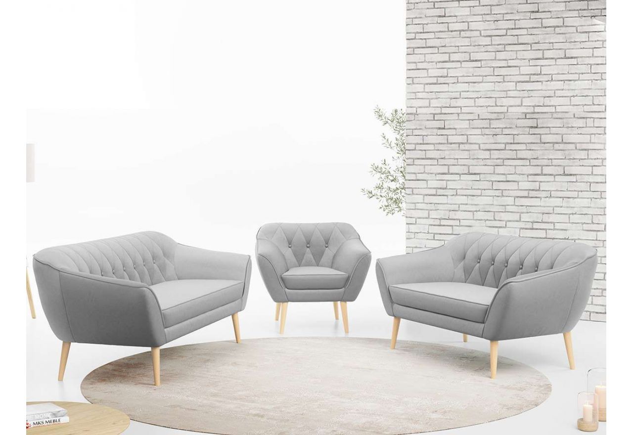 Modny zestaw wypoczynkowy PIRS 3+2+1 to połączenie pikowanego oparcia i skandynawskiego stylu. Stworzony do eleganckich czy nowoczesnych wnętrz. W zestawie sofa trzyosobowa, sofa dwuosobowa oraz fotel. Dużo miejsca dla Ciebie i Twoich domowników oraz gości.