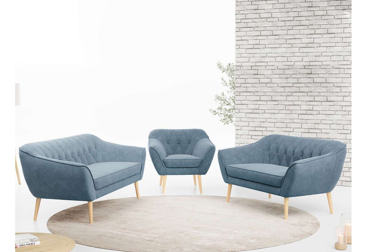 Zestaw wypoczynkowy do salonu w stylu skandynawskim - PIRS 3+2+1 granatowy