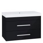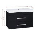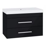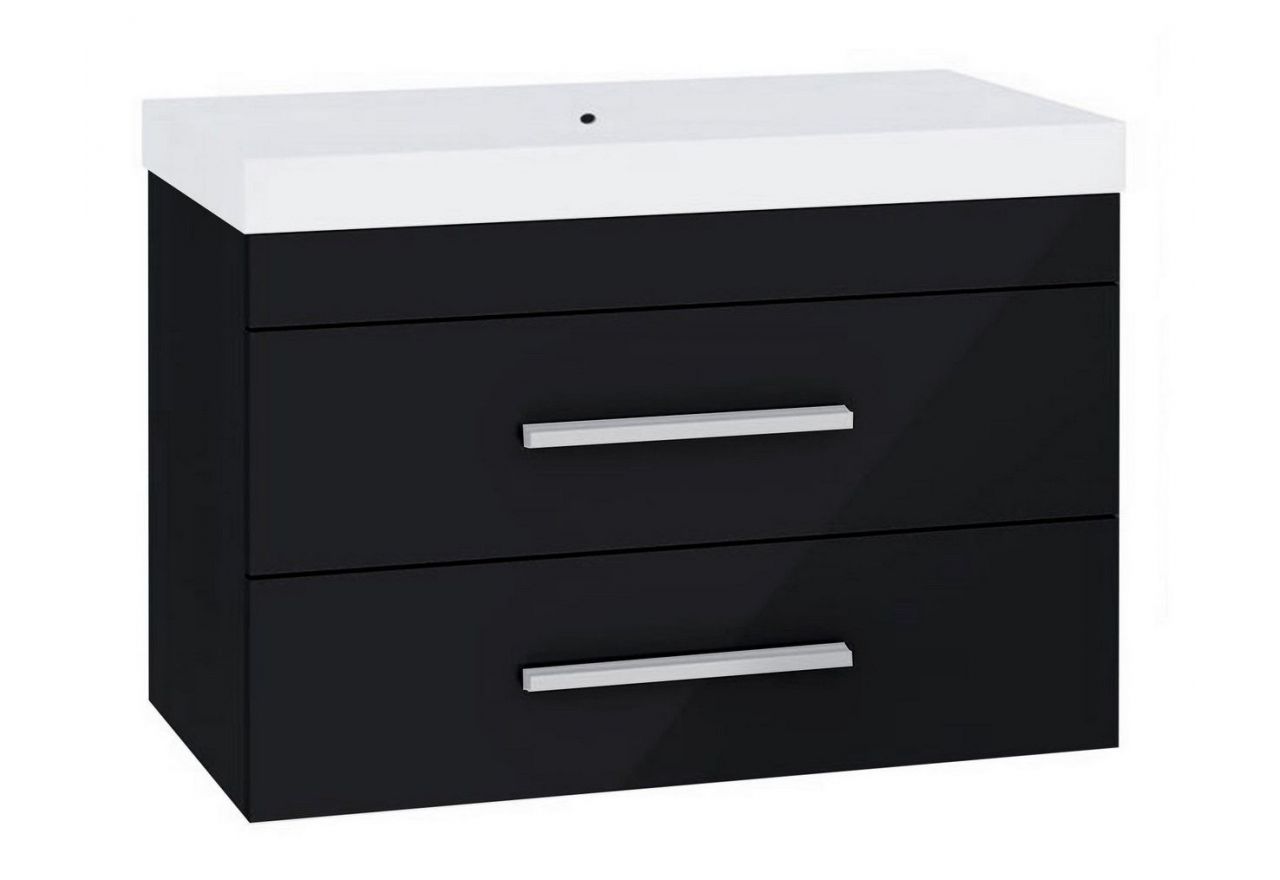 Wisząca szafka do łazienki z umywalką w zestawie i dwoma szufladami - FABIO 4 / Czarny / Czarny połysk