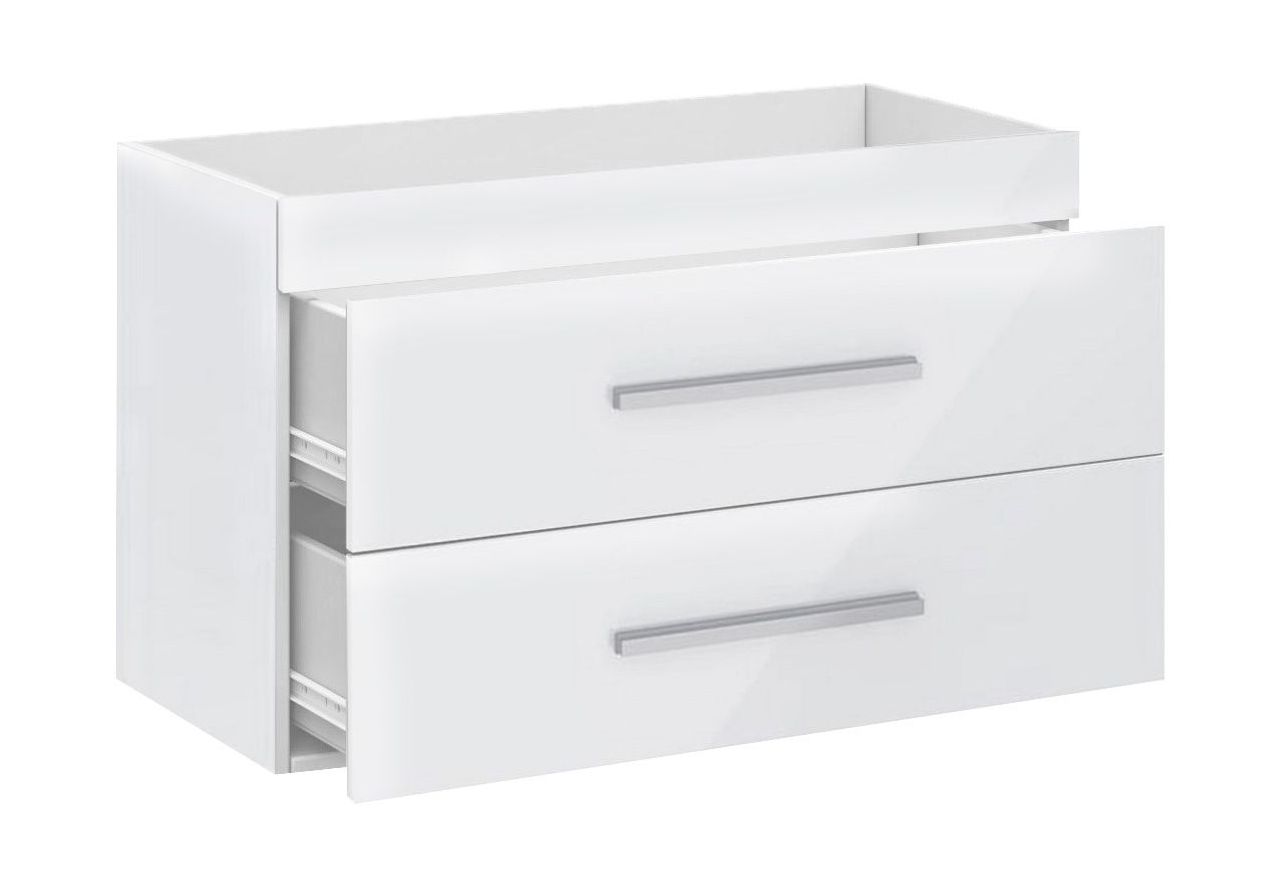 Szafka wisząca z umywalką to niezbędny element, który musisz mieć w swojej łazience. Posiada dwie szuflady do których pomieścisz potrzebne rzeczy. Wykonana została z wysokiej jakości płyty laminowanej 16 mm, odpornej na wilgoć i zarysowania. Fronty szuflad wykończone w pełnym połysku, natomiast korpus w macie. Szuflady zostały wyposażone w prowadnice rolkowe ułatwiające pełny wysuw. Uchwyty wykonane zostały z tworzywa sztucznego. Zaprojektowana w nowoczesnym designie. Wyposaż swoją łazienkę w niezwykle funkcjonalną szafkę wiszącą pod umywalkę FABIO 4.