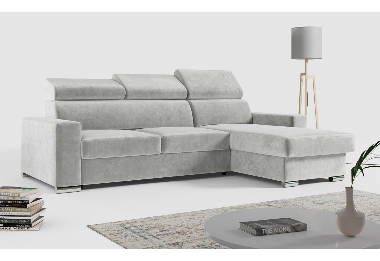 Rozkładany narożnik z funkcją spania i regulowanymi zagłówkami - FOX jasny szary