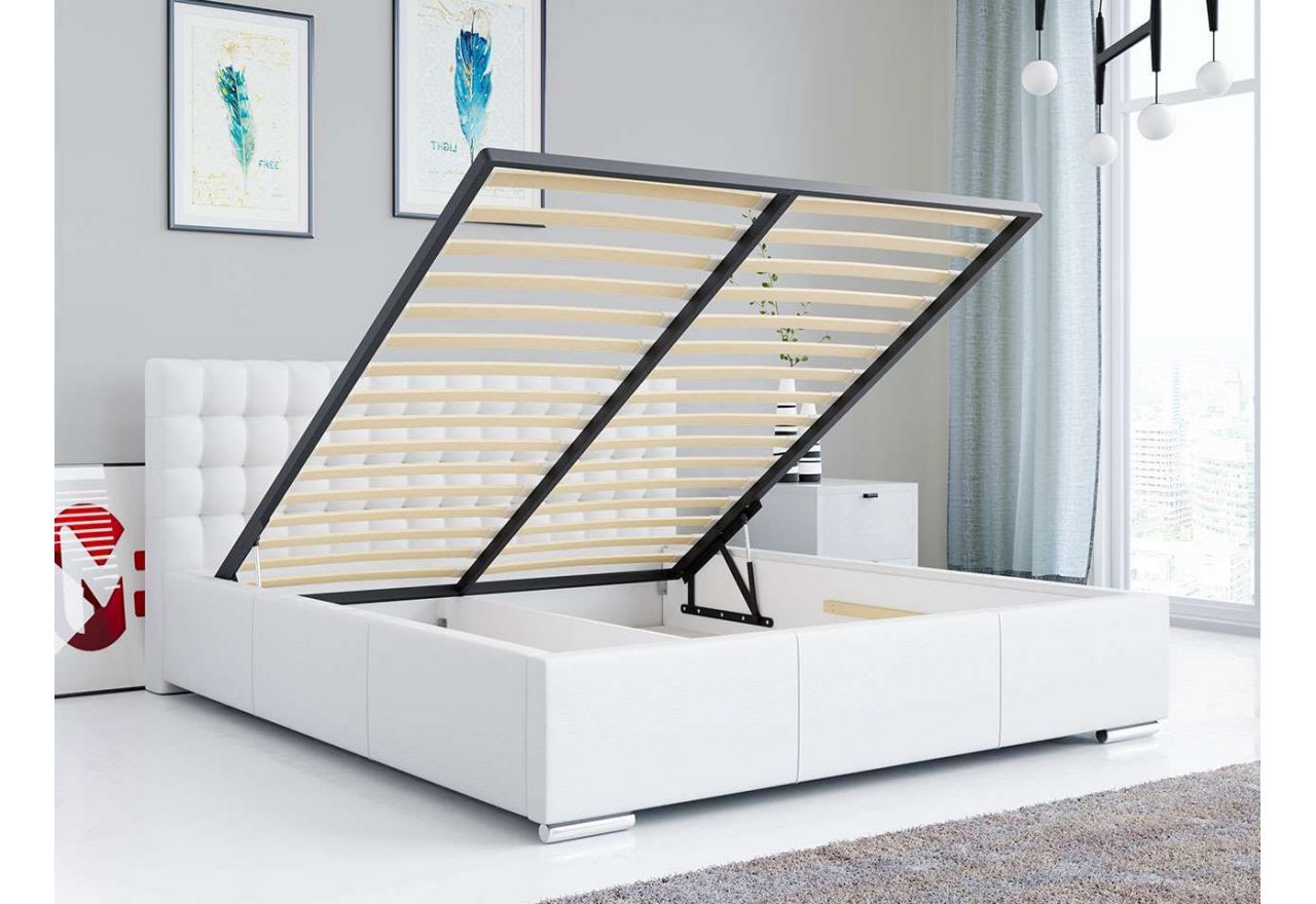 Lubią Państwo wielofunkcyjne meble? Łóżka tapicerowane z pojemnikiem to wyjątkowe modele, które zdobędą uwagę każdej osoby dbającej o porządek. To nie tylko rozwiązanie do małych wnętrz, ale właściwie do każdej sypialni. W dużym pojemniku zajmującym całe wnętrze mebla mogą Państwo poukładać odzież sezonową, pościel czy koce. Aby mieć do niego dostęp wystarczy lekko unieść stelaż z materacem i zatrzymać go w dogodnej pozycji dzięki podnośnikom gazowym. Wybrane łóżka mogą także posiadać szuflady zlokalizowane z przodu lub z boków, dlatego polecamy dokładne poznanie parametrów przed podjęciem ostatecznej decyzji.