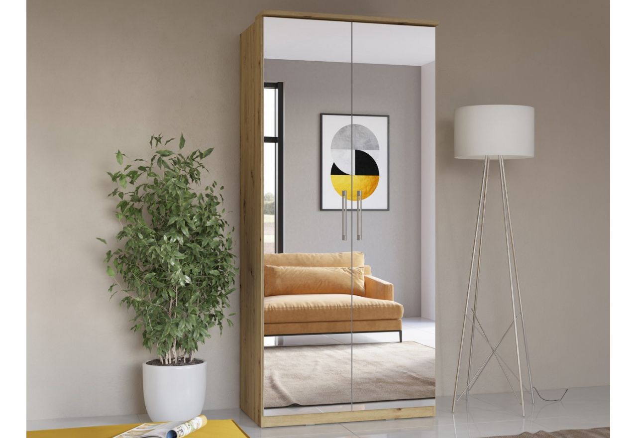 Szafa w nowoczesnym stylu dwudrzwiowa 90 cm z lustrem na froncie - OLIVER Dąb Artisan / Lustro