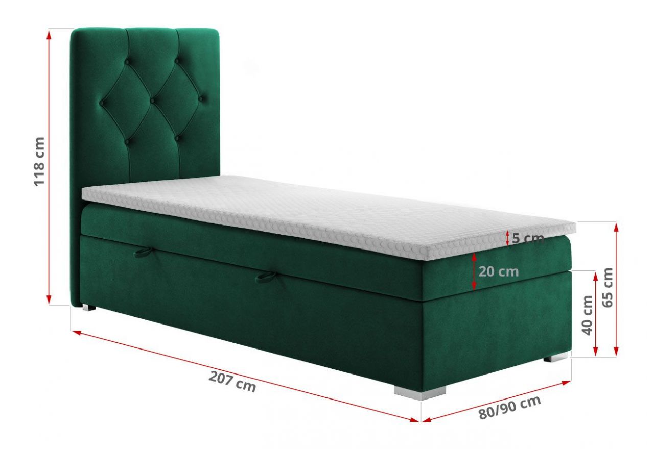 Główny materac kieszeniowy Multipocket dostarcza doskonałego wsparcia dla ciała, dzięki wysokoelastycznej piance T-30 co jest kluczowe dla zdrowego snu. Jego konstrukcja z niezależnymi kieszeniami minimalizuje przenoszenie ruchu. Dodatkowo, materac nawierzchniowy wykończony pianką T-25 zapewnia uczucie miękkości i komfortu, dostosowując się do kształtu ciała. Dwa pojemniki na pościel to praktyczne rozwiązanie, które pozwoli na łatwe przechowywanie pościeli i utrzymanie porządku. Automat na sprężynach sprawia, że otwieranie pojemników jest wygodne i szybkie. Tapicerowany zagłówek to prawdziwa ozdoba, która dodaje wnętrzu klasy i staje się centralnym punktem każdej sypialni.
